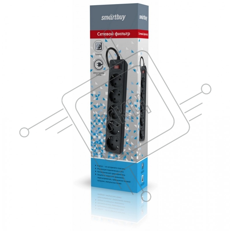Сетевой фильтр Smartbuy (SBSP-30-K) - 5 роз х 3 м - черный