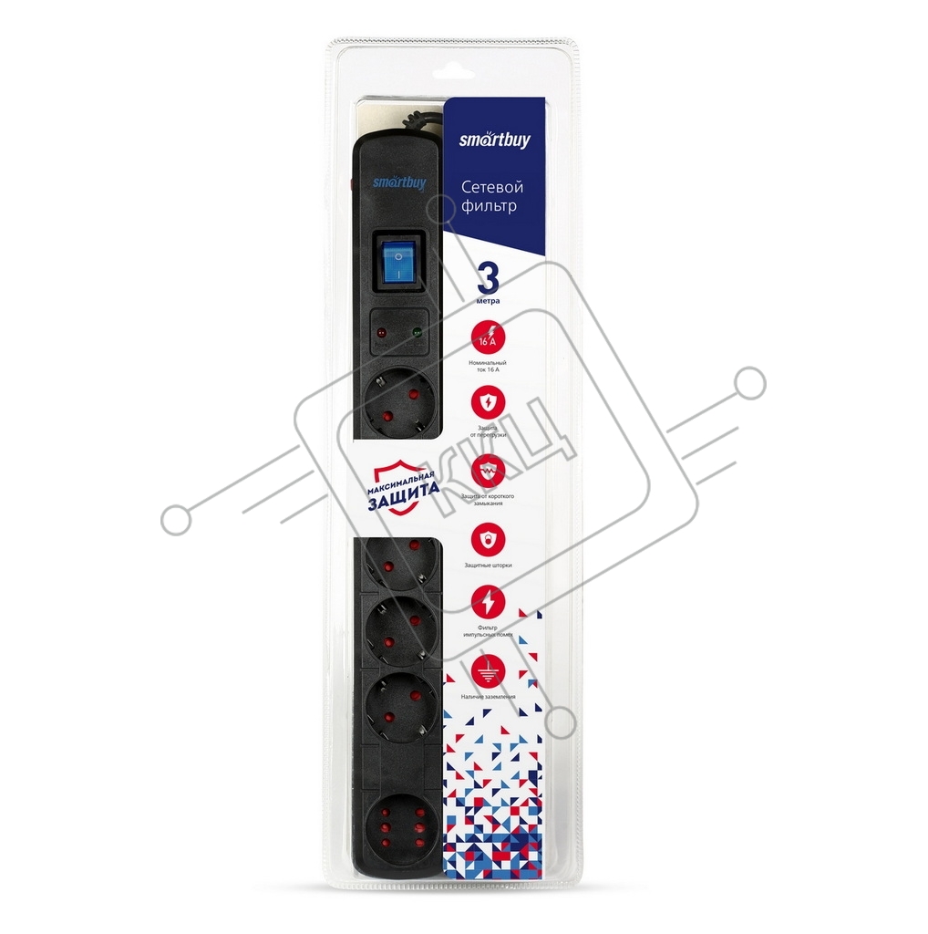 Сетевой фильтр Smartbuy (SBSP-30K-Pro) - 6 роз х3,0 м - черный