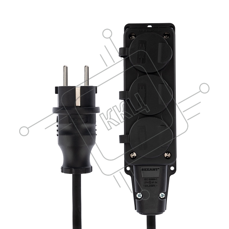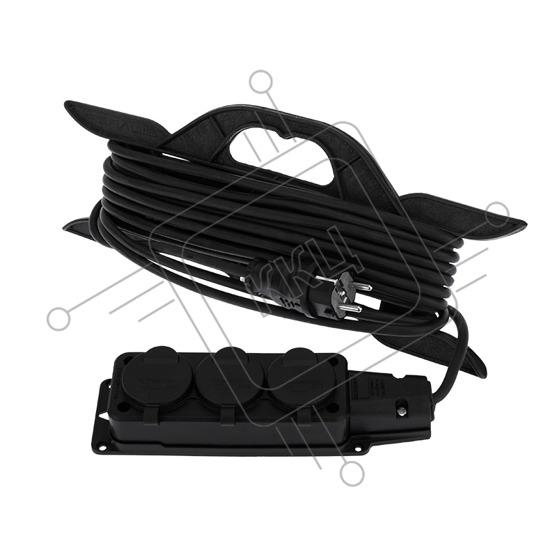 Удлинитель-шнур на рамке Rexant КГ 3х1.5, 10 м, 3 гнезда, морозостойкий, с/з, 16 А, 3500 Вт, IP44 (Сделано в России)