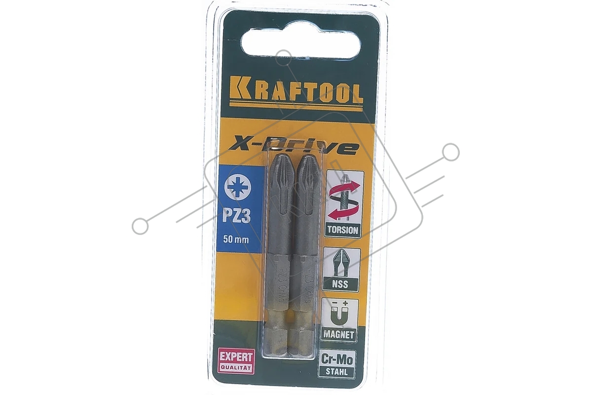 Биты KRAFTOOL "X-DRIVE" торсионные кованые, обточенные, Cr-Mo сталь, тип хвостовика E 1/4", PZ3, 50мм, 2шт