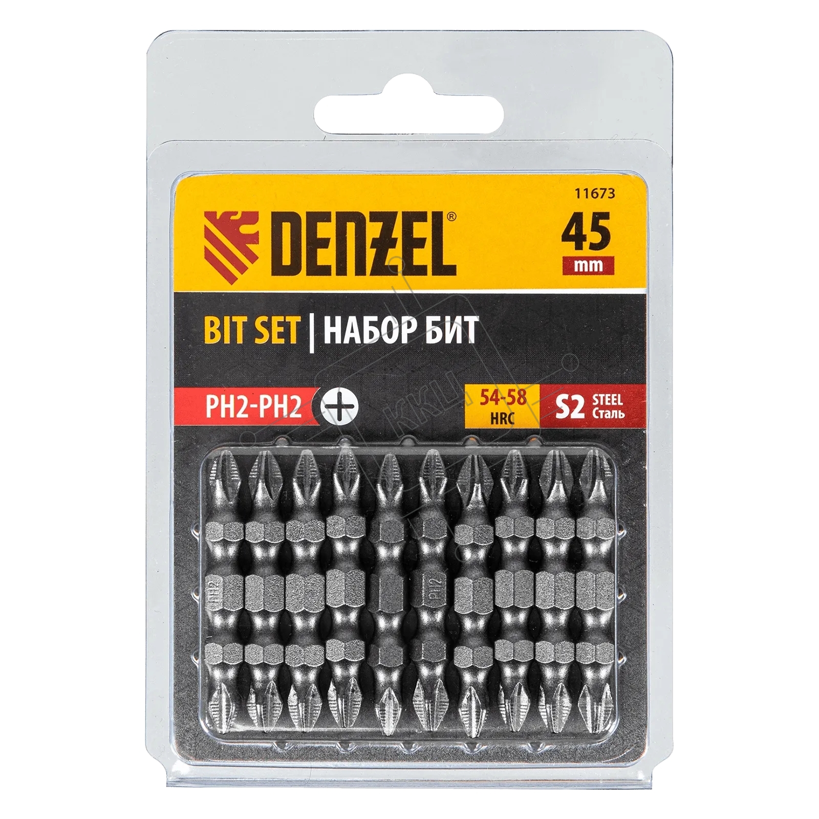 Набор бит Denzel двухстор., PH2-PH2х45 мм, сталь S2, 10 шт.