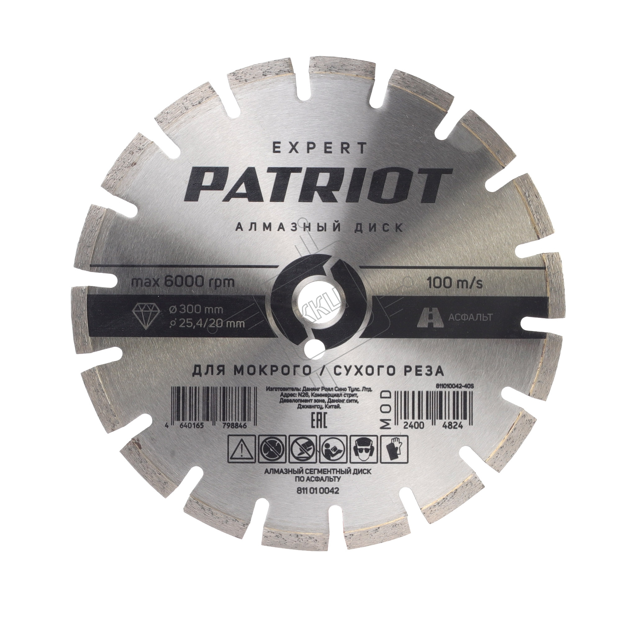 Диск PATRIOT EXPERT алмазный сегментный 300х25,4/20 по Асфальту