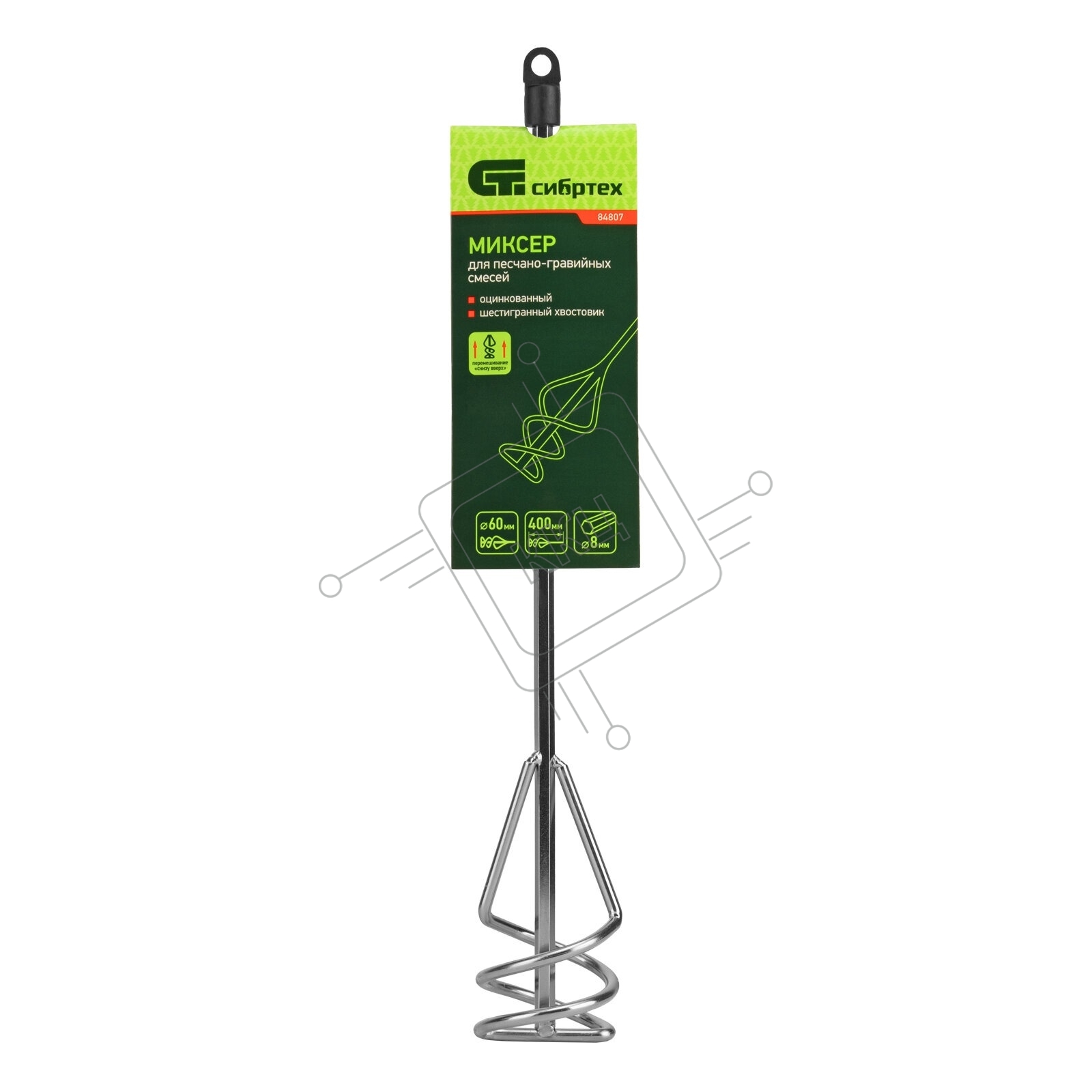 Венчик для миксера Сибртех из оцинкованной стали d 80мм, 450мм для красок и штукатурки