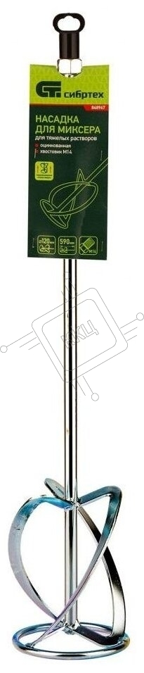 Насадка для миксера Сибртех, для тяжелых растворов,120 х 590 мм, оцинкованная,хвостовик резьба М14
