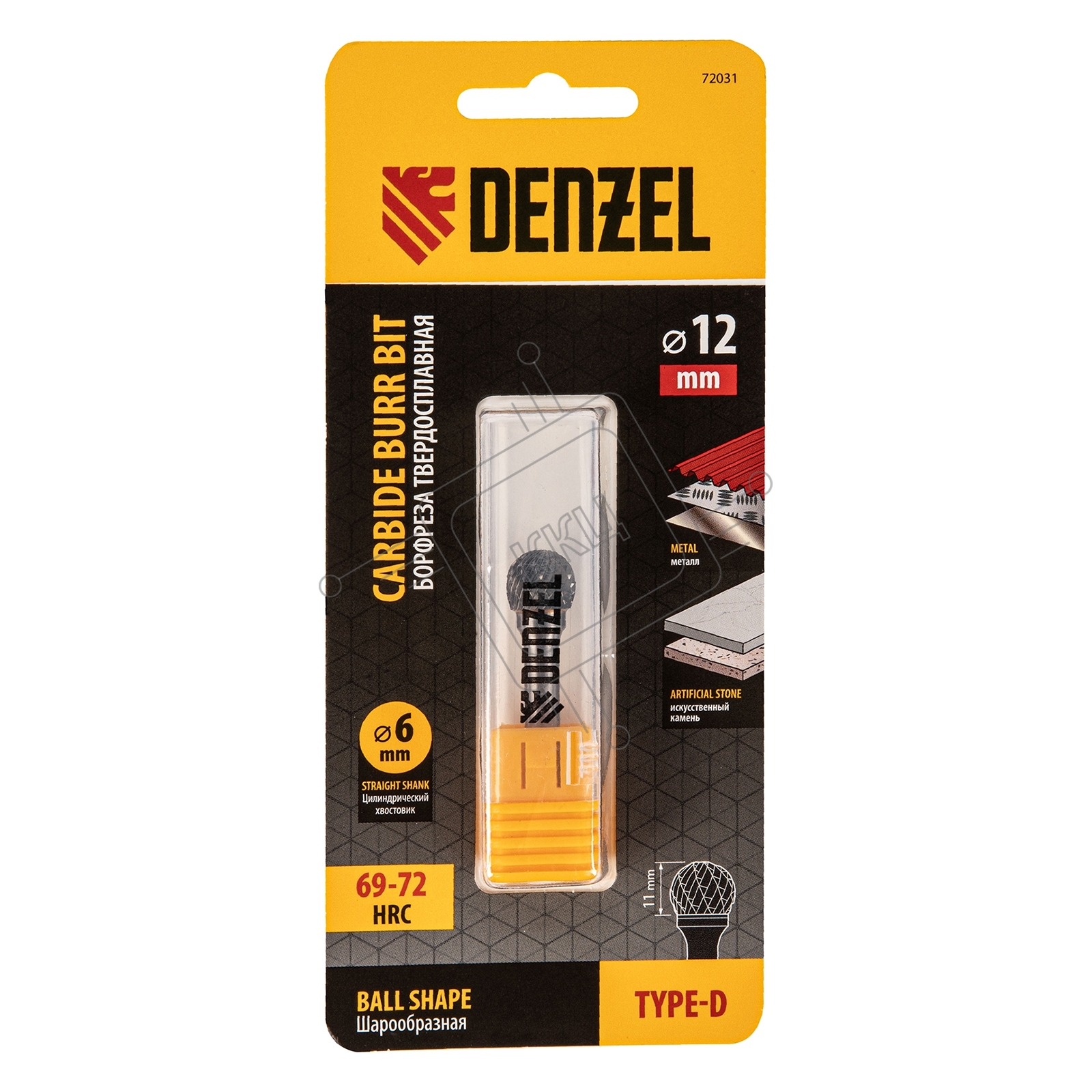 Борфреза по металлу твердосплавная, шарообразная, тип-D, 12 мм Denzel