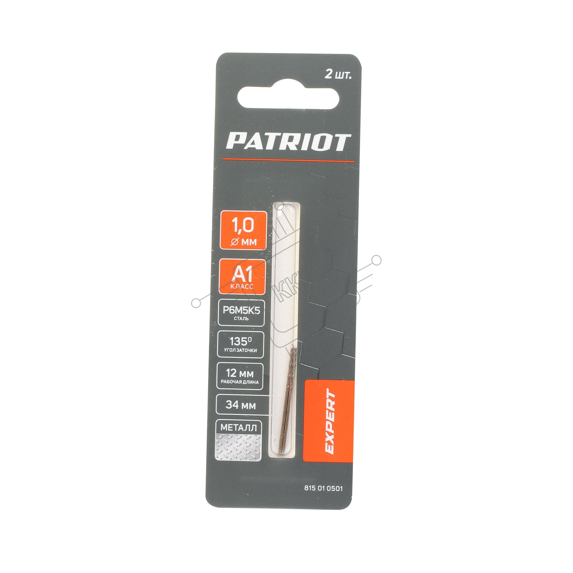 Сверло PATRIOT EXPERT по металлу, Р6М5К5, 1,0 мм, 2шт в блистере