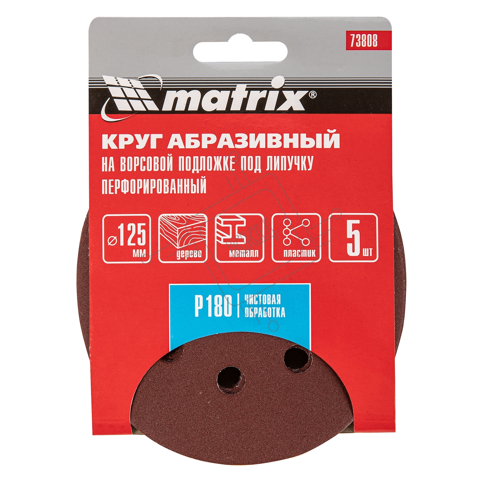 Круг абразивный Matrix на ворсовой подложке под "липучку", перфорированный, P 180, 125 мм, 5 шт.