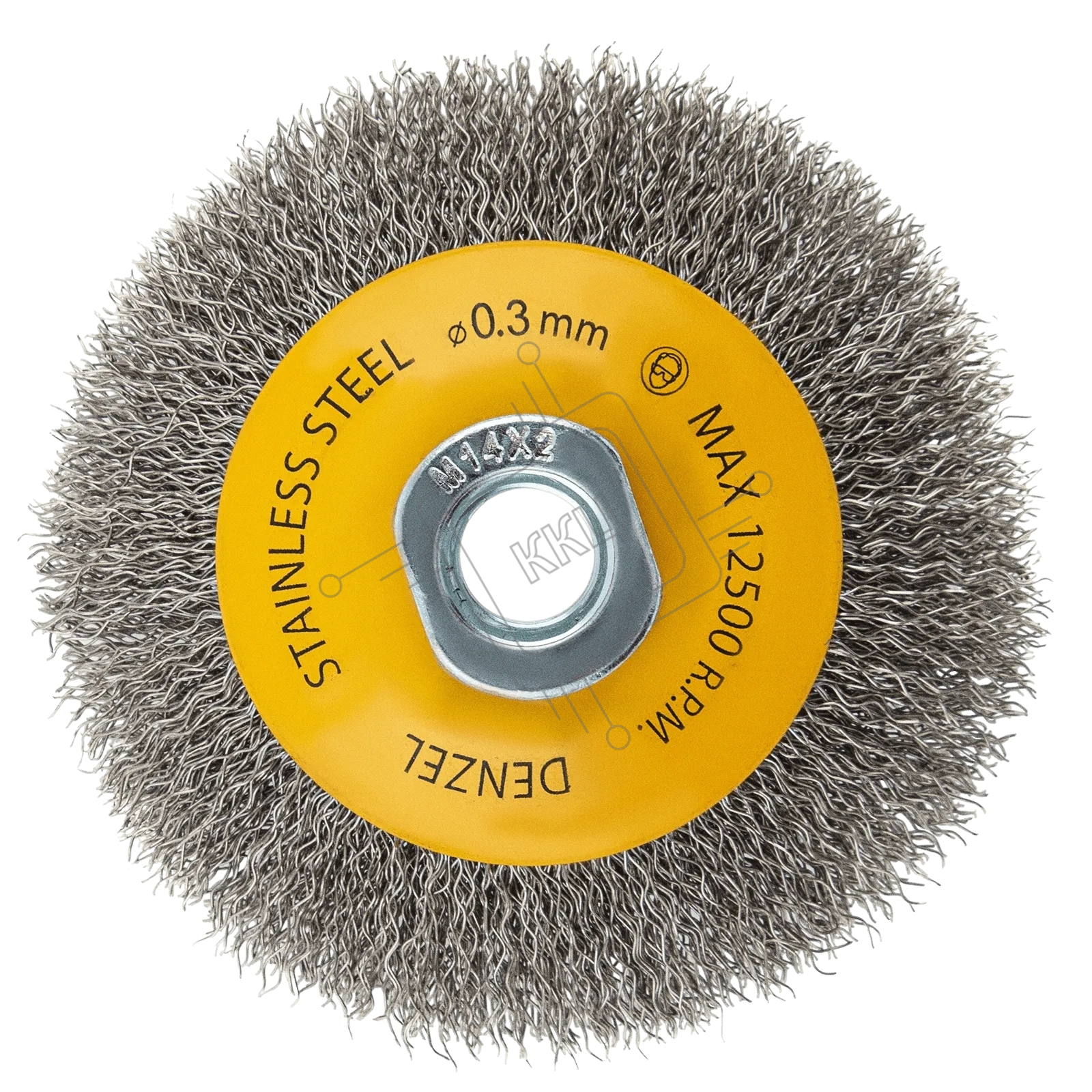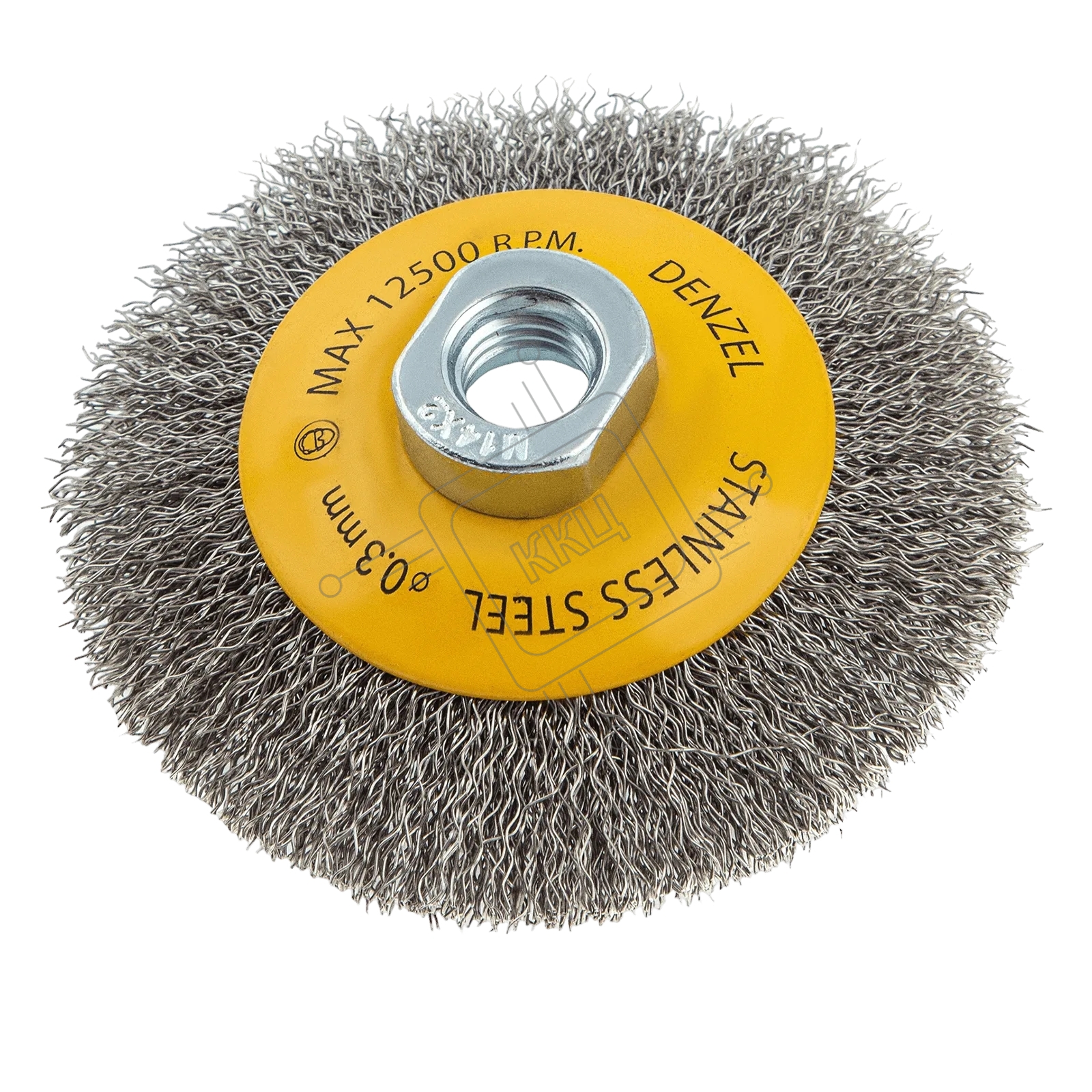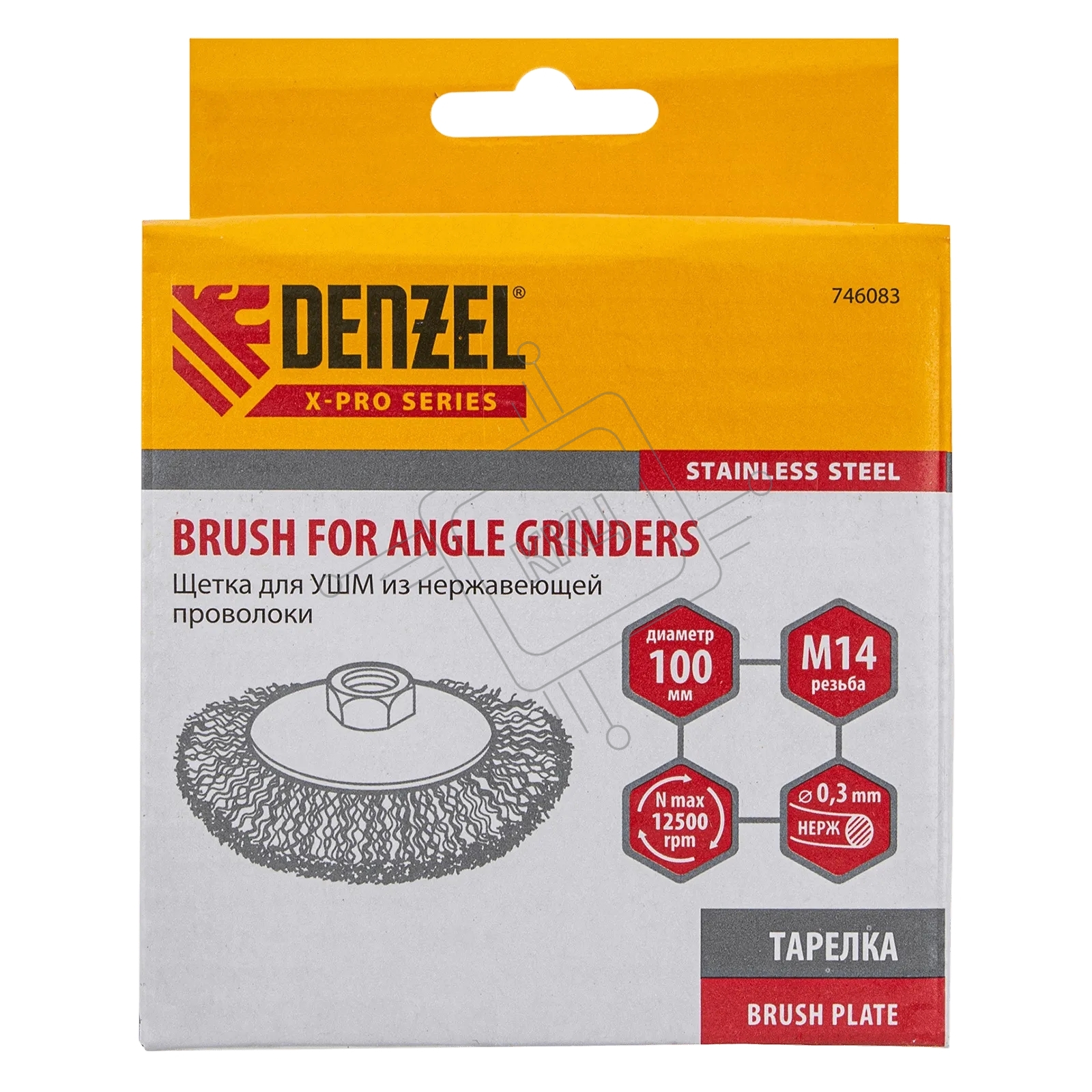 Щетка для УШМ Denzel 100 мм, М14, тарелка, витая нержавеющая проволока 0,3 мм