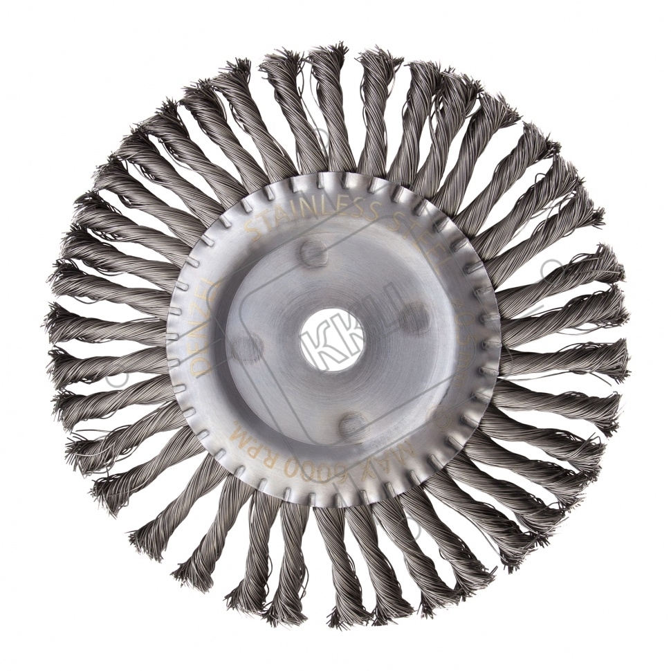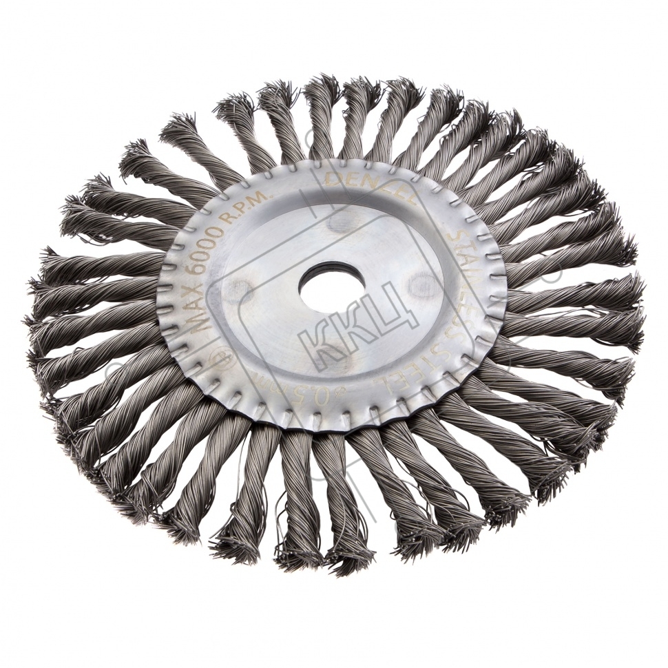 Щетка для УШМ, 200 мм, Плоская, крученая нержавеющая проволока 0,5 мм, посадка 22,2 мм Denzel