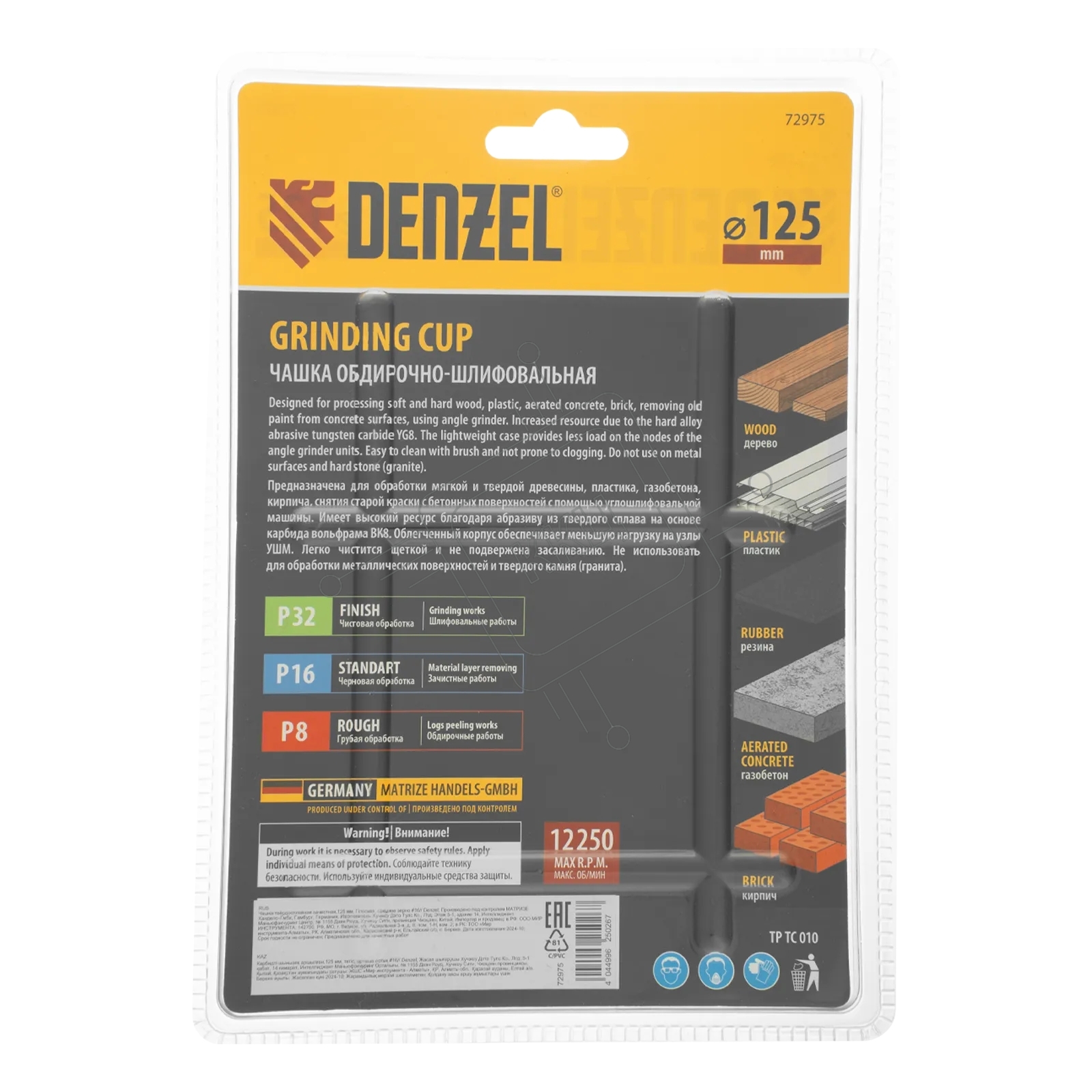 Чашка твердосплавная зачистная Denzel 125 мм, плоская, среднее зерно #16