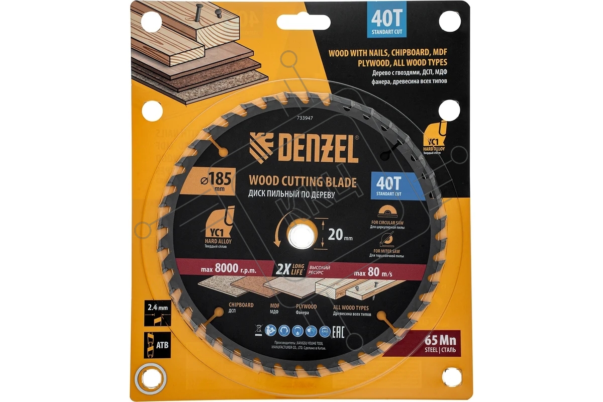 Пильный диск по дереву с гвоздями Denzel ф185 х 20 мм, 40 зубов 733947