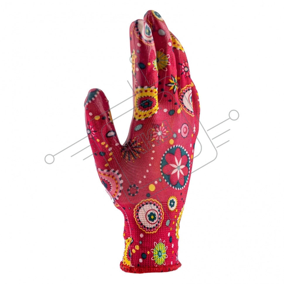Перчатки садовые из полиэстера с нитрильным обливом, красные, S Palisad