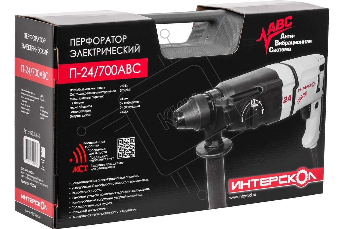 Перфоратор ИНТЕРСКОЛ П-24/700АВС SDS plus, с АВС сист. (кейс) 160.1.4.40