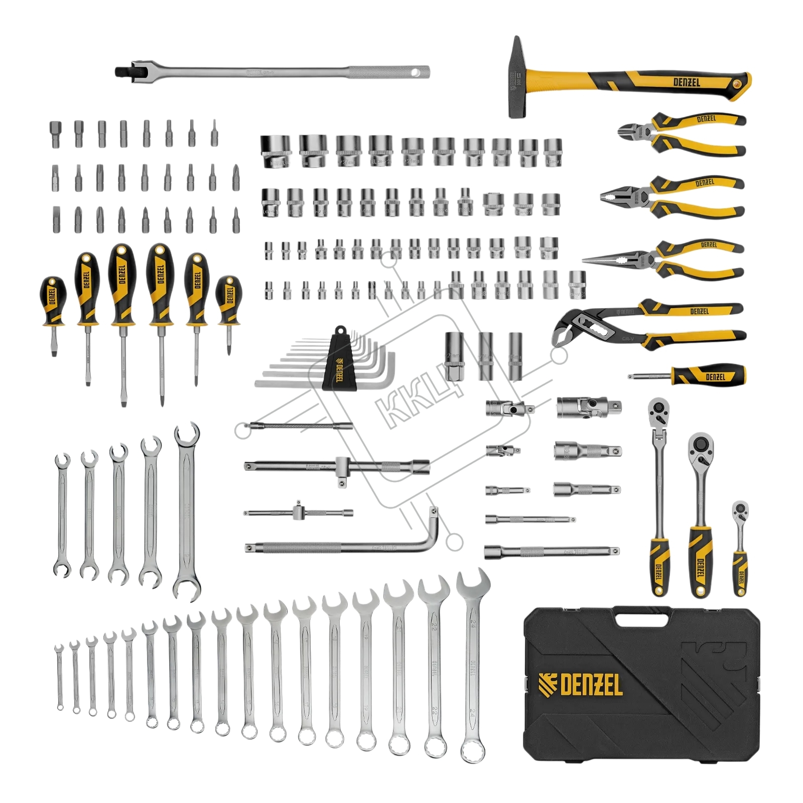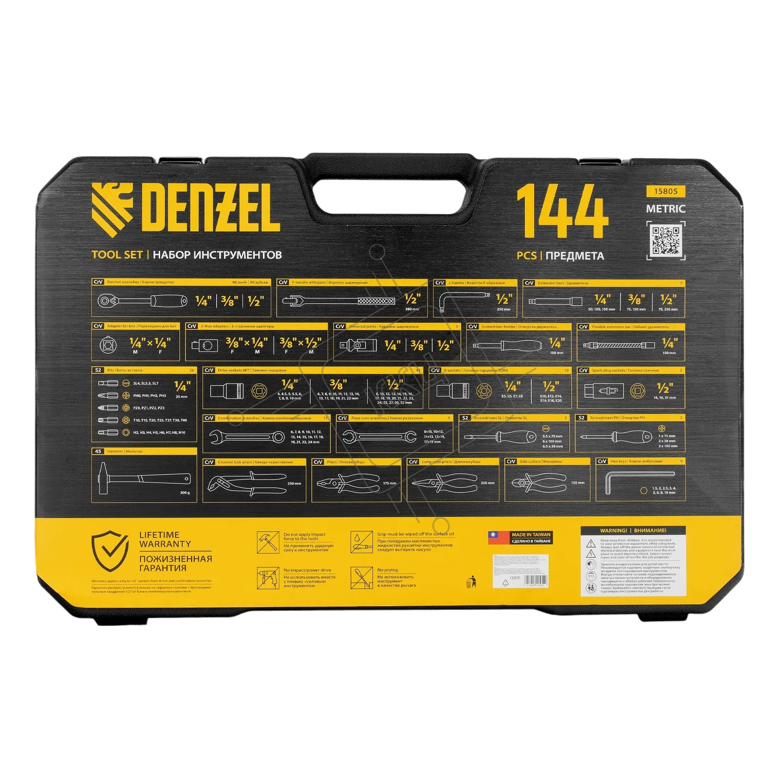 Набор инструментов Denzel 1/2", 1/4", 3/8", CrV, S2, пластиковый кейс, 144 предмета