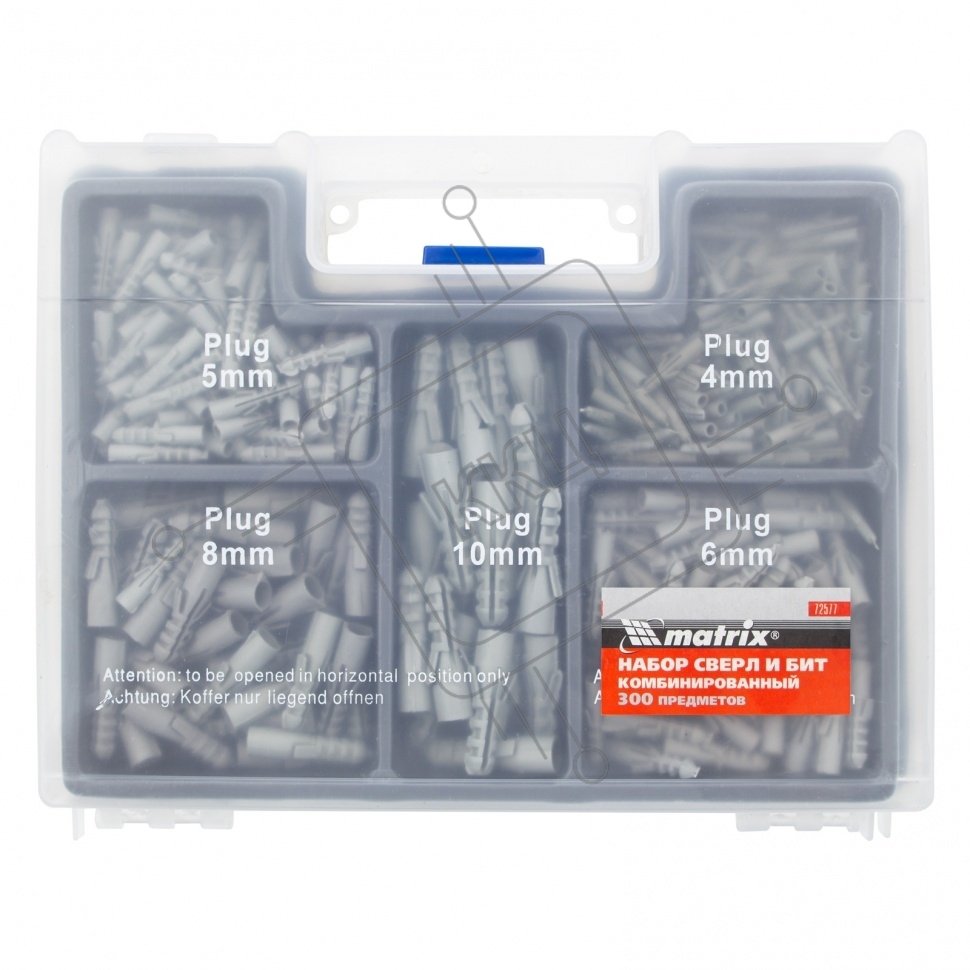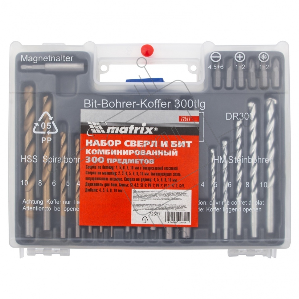 Набор сверл комбинированный (бетон 4-10мм, мет. 2-10мм, дер. 4-10мм, дюбеля) 300пр. Matrix