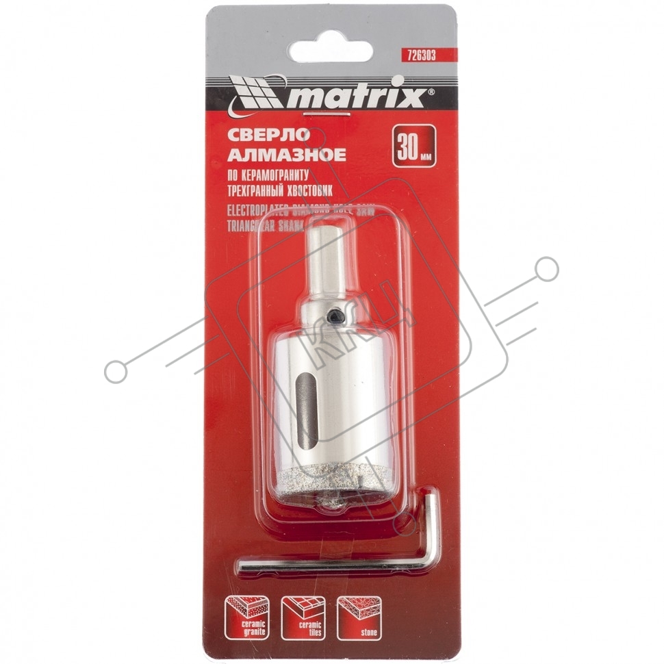 Сверло алмазное Matrix по керамограниту, 30 х 67 мм