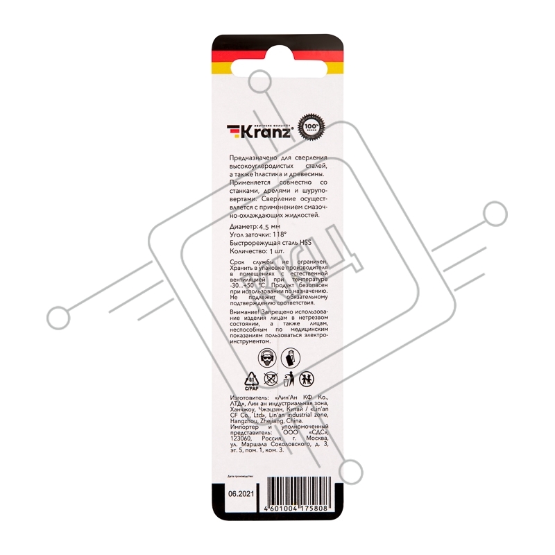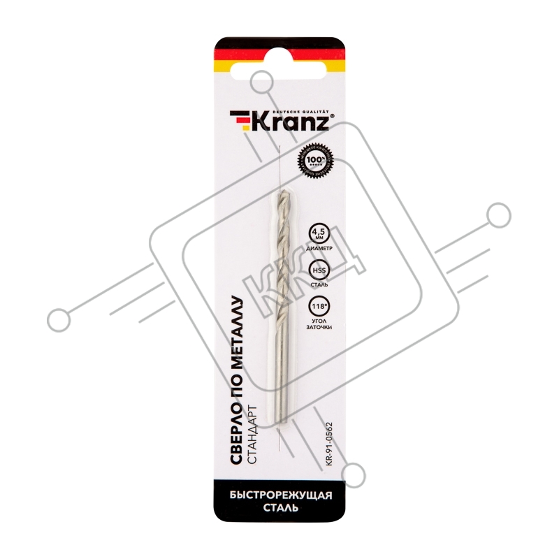 Сверло по металлу 4,5х80х47 мм HSS (1 шт. в упаковке) DIN 338 Kranz