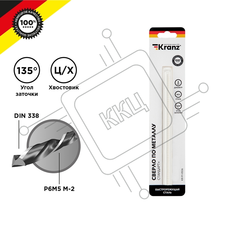 Сверло по металлу 8х117х75 мм "Стандарт+" (P6M5 M-2) (1 шт. в блистере) DIN 338 Kranz