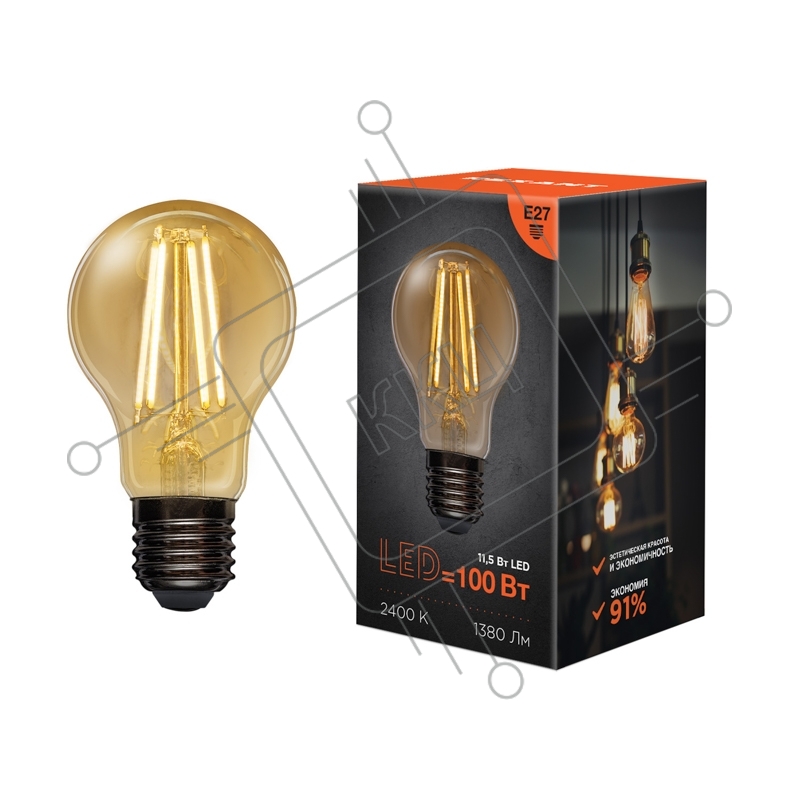 Лампа светодиодная филаментная Rexant Груша A60 11.5 Вт 1380 Лм 2400K E27 золотистая колба