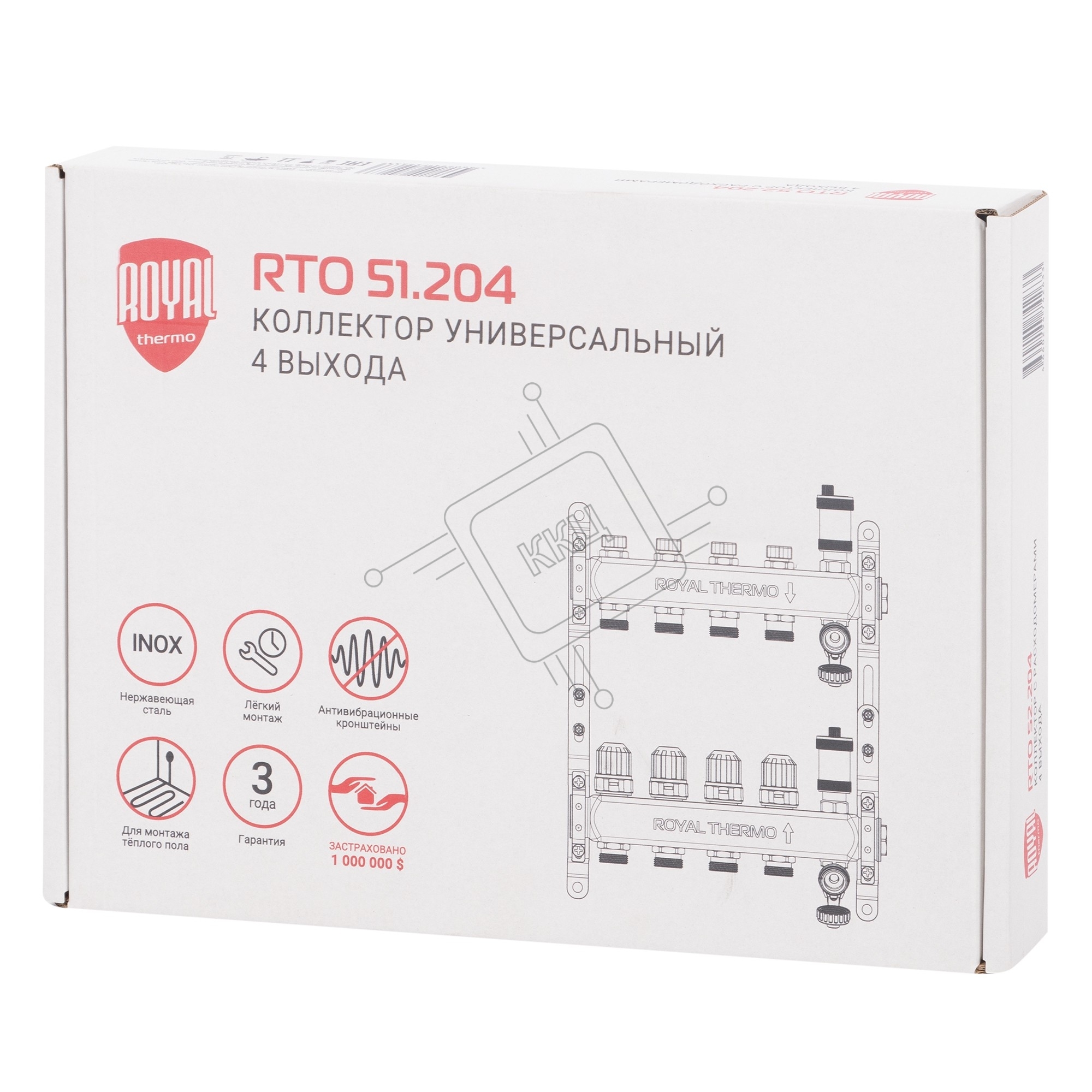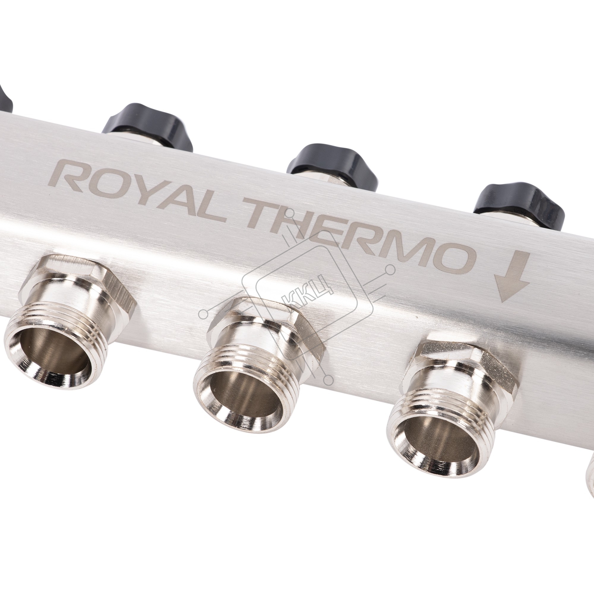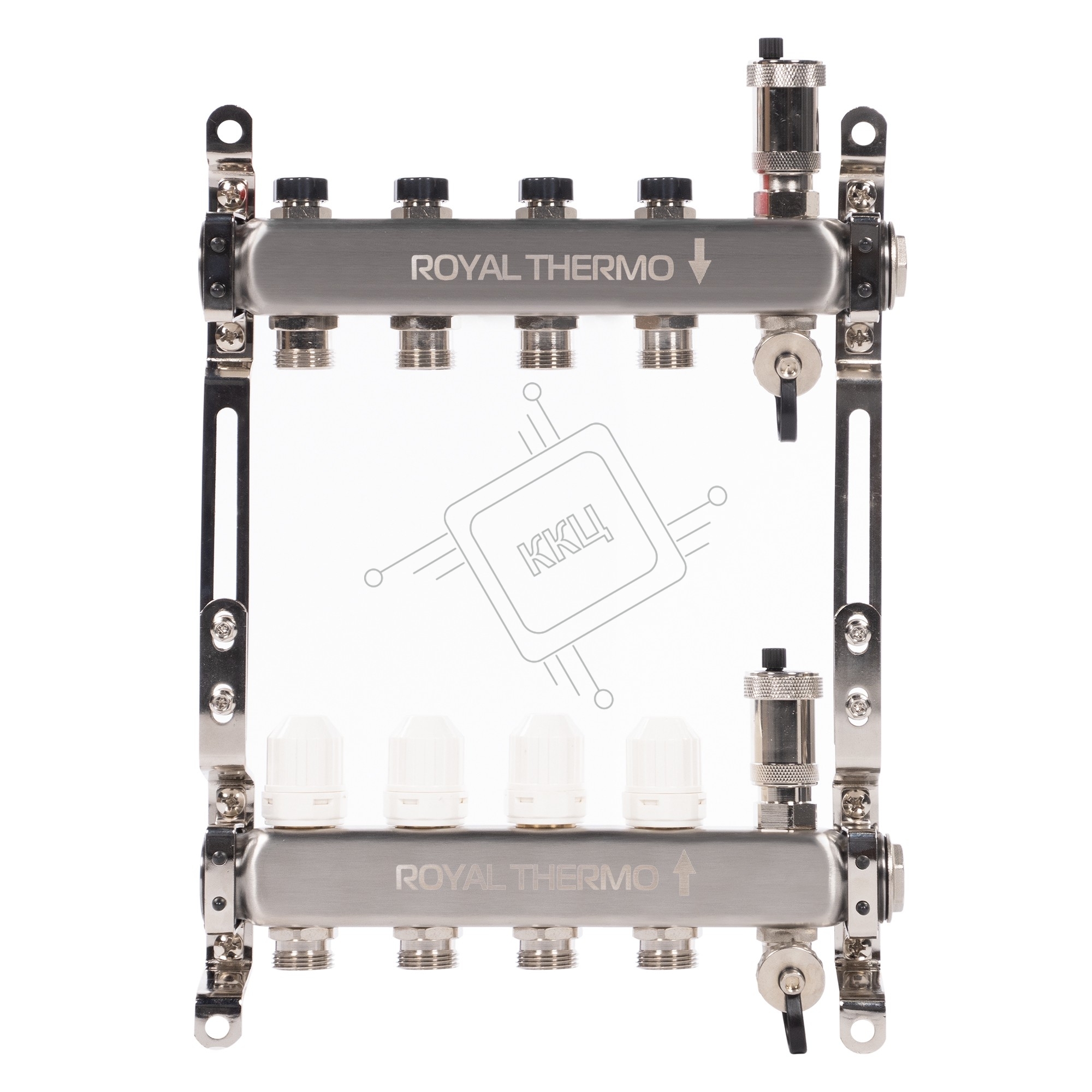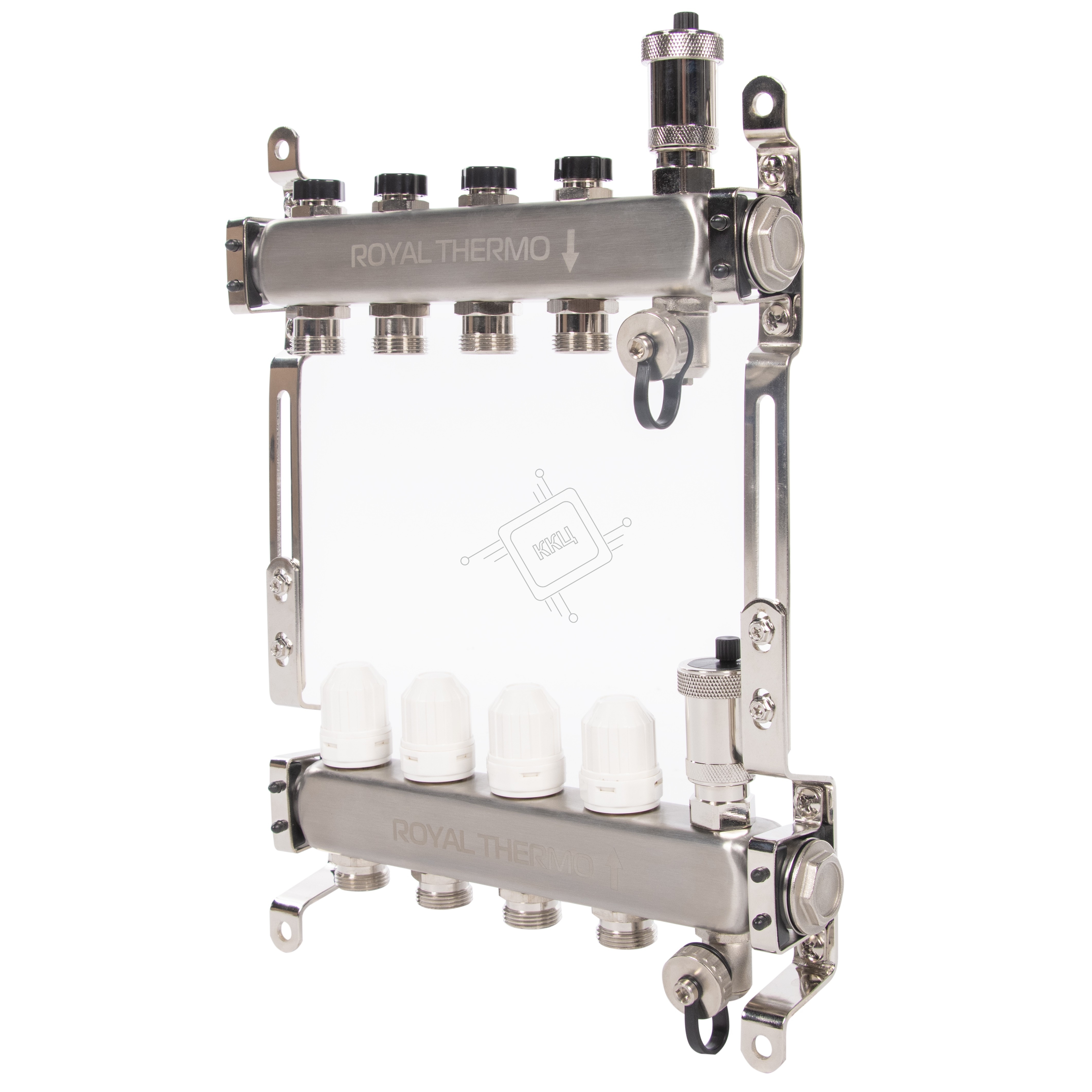 Коллектор Royal Thermo нерж. в сборе универсальный 1" ВР-3/4" НР с автомат. воздухоотвод-ми 4 вых.