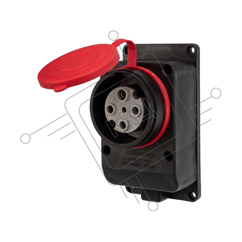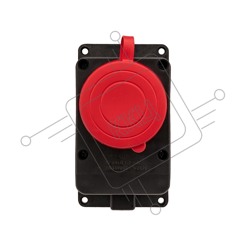 Розетка влагозащищенная настенная с крышкой, 3Р+РЕ, 32 А IP44 черная каучук Rexant