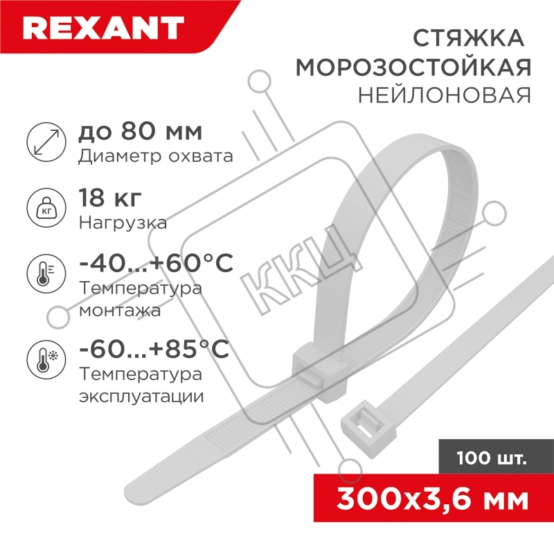 Стяжка нейлоновая морозостойкая Rexant 300x3,6мм, белая (100 шт/уп)