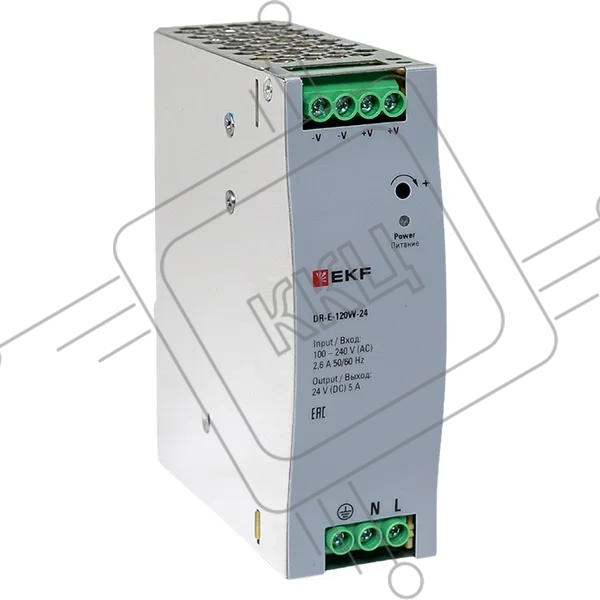 Блок питания на дин рейку EKF DR-E-120W-24 120 вт,Uвх ~ 220 В AC, Uвых - 24 В DC постоянного тока
