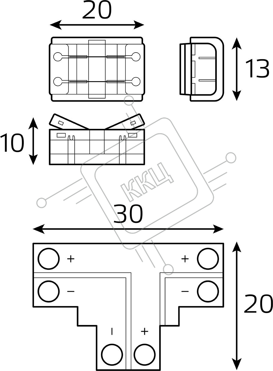 Набор коннекторов Basic: Т-образный коннектор, 3 клипсы, 8-10 мм, IP20