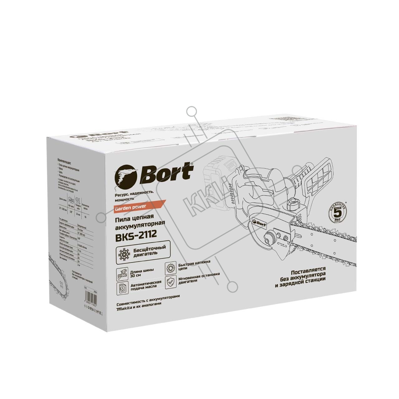 Цепная пила аккумуляторная Bort BKS-2112 18В Li-Ion, Makita 18V LXT, шина 305мм, Бесщеточный, Шаг цепи, дюйм 3/8, холостого хода, об/мин 0-3 400, вес 2 кг, БЕЗ АКБ И ЗУ [93418422]