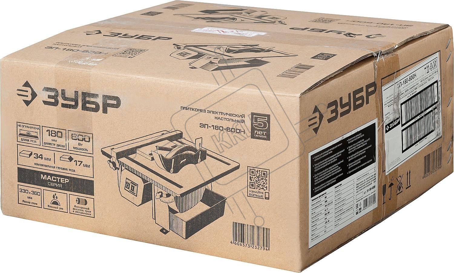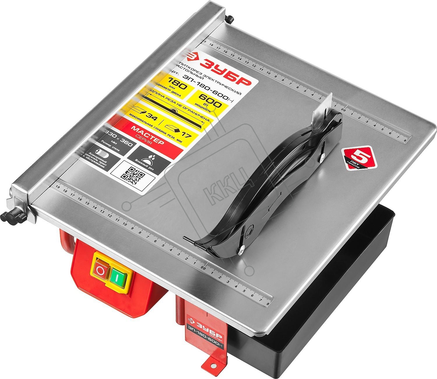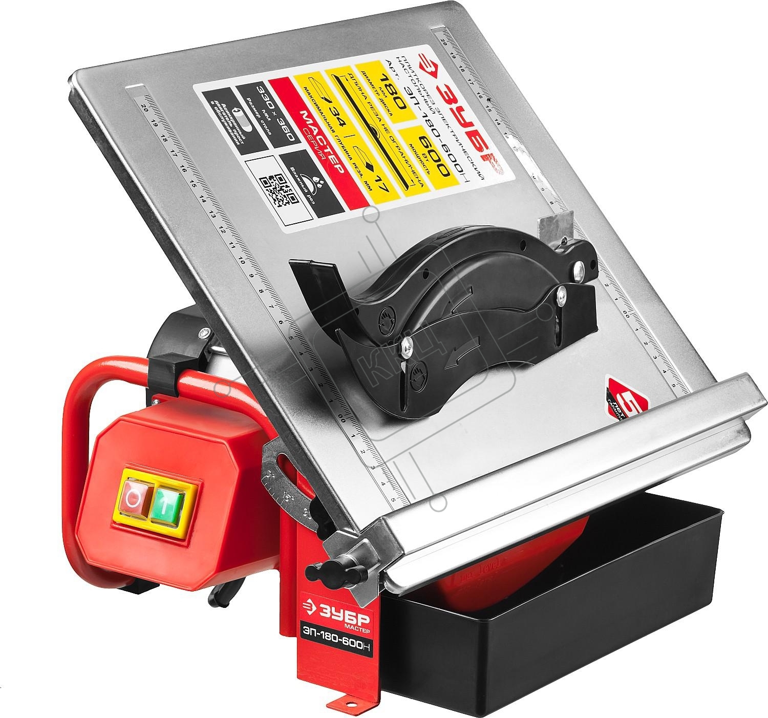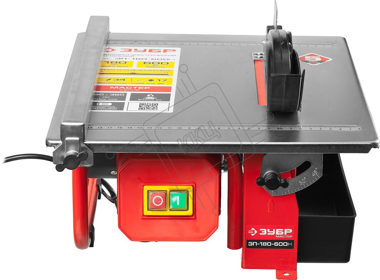 Электроплиткорез ЗУБР "МАСТЕР" ЭП-180-600Н { диск 180 мм, глубина реза 90°-34мм/45°-17мм, стол 330х360мм, 2950об/мин, 600Вт }