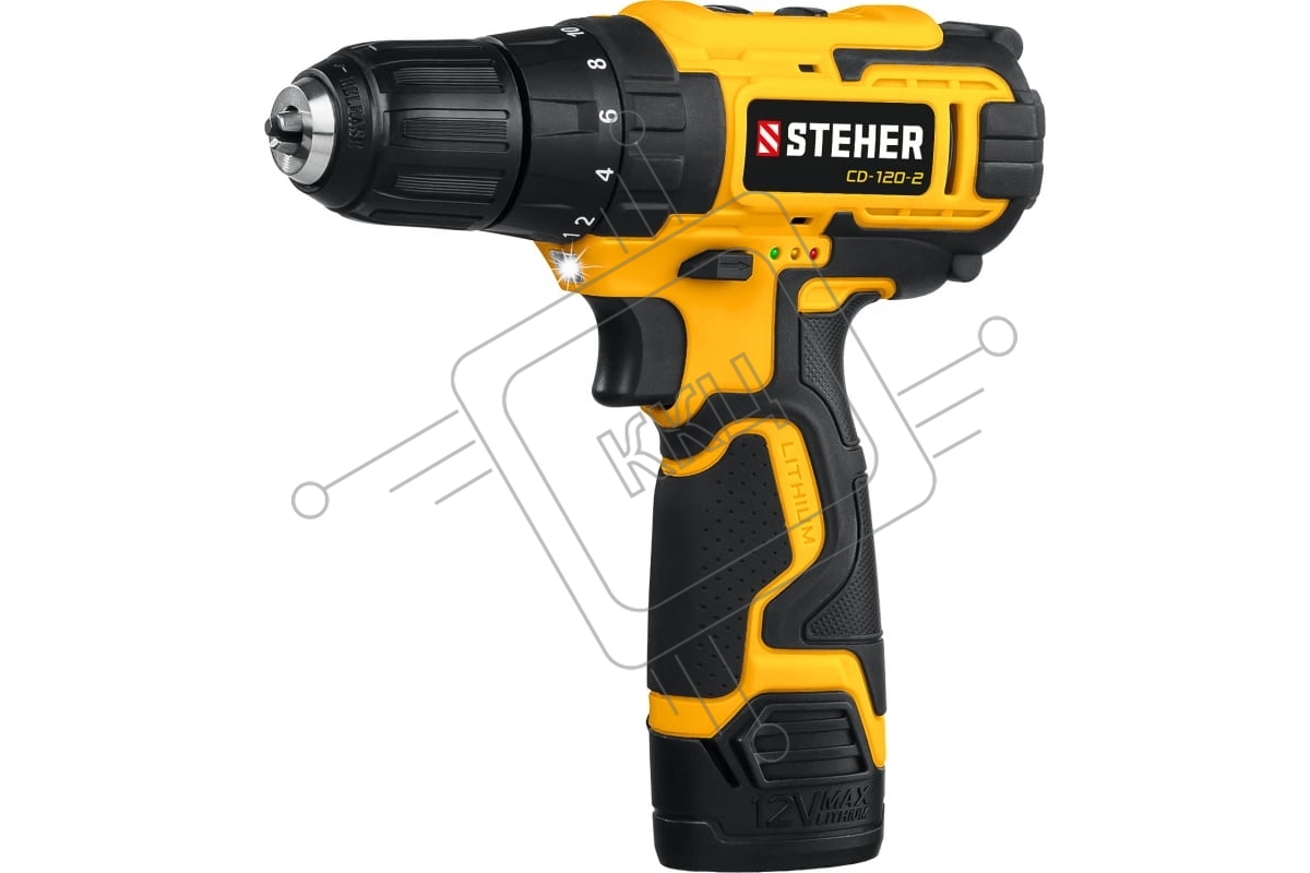Дрель-шуруповерт аккумуляторная STEHER CD-120-2, Аккумуляторная, 12В, 2 АКБ, Кейс
