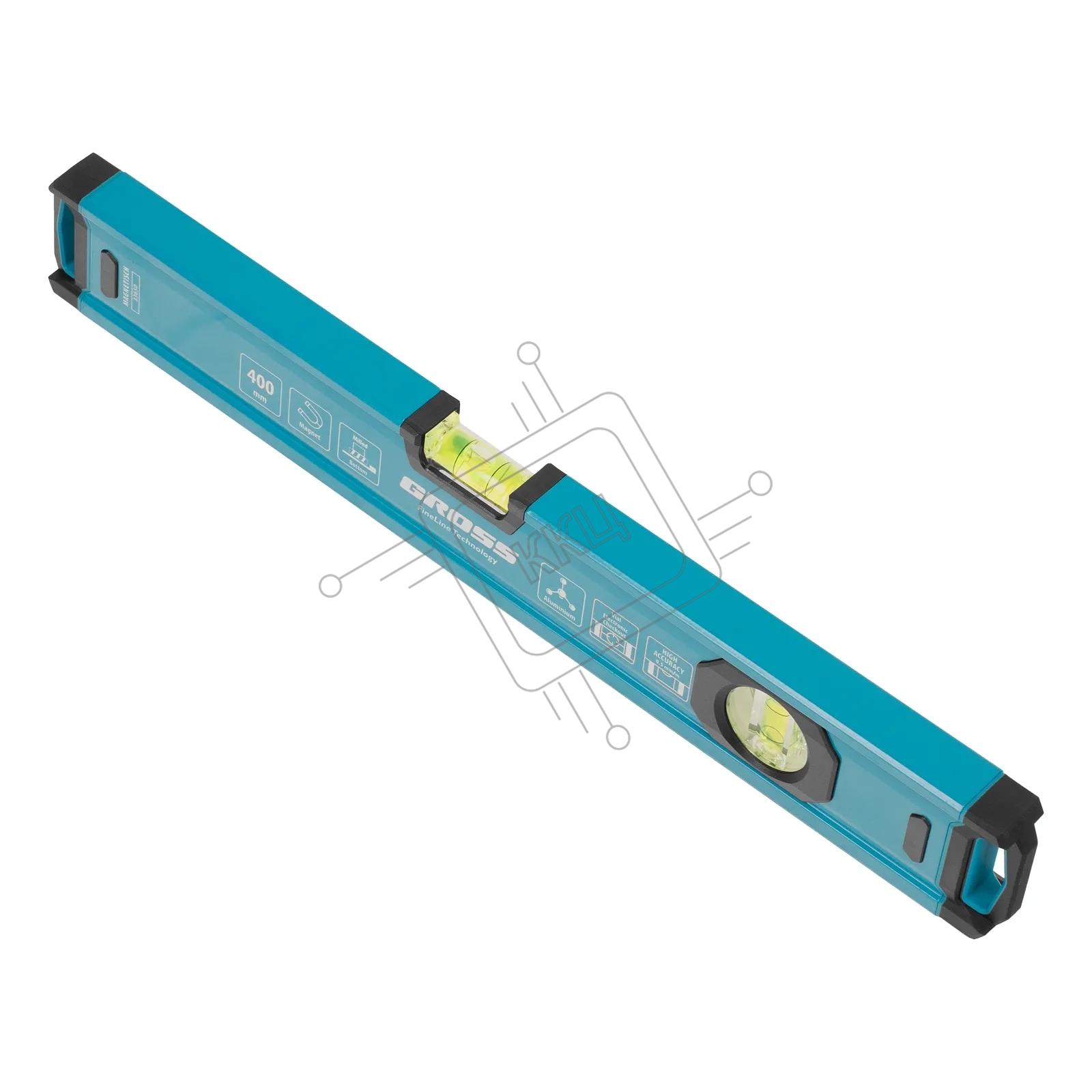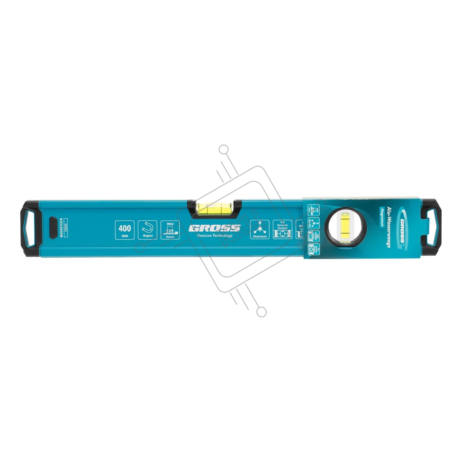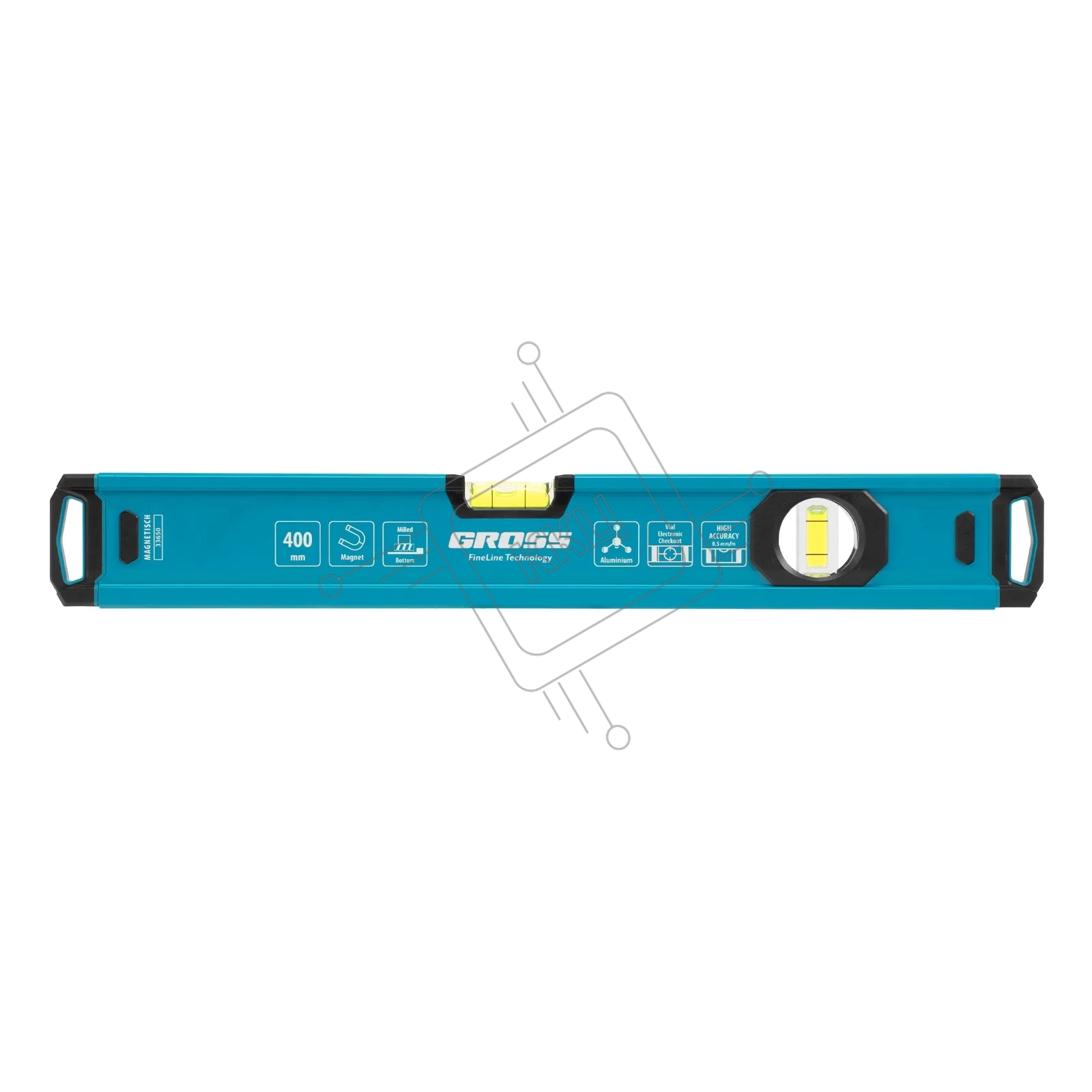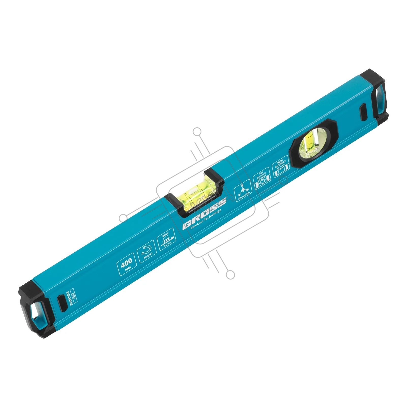 Уровень Gross 33650 алюминиевый, магнит., фрезерованный, 2 глазка, 0,5 мм/м, 400 мм