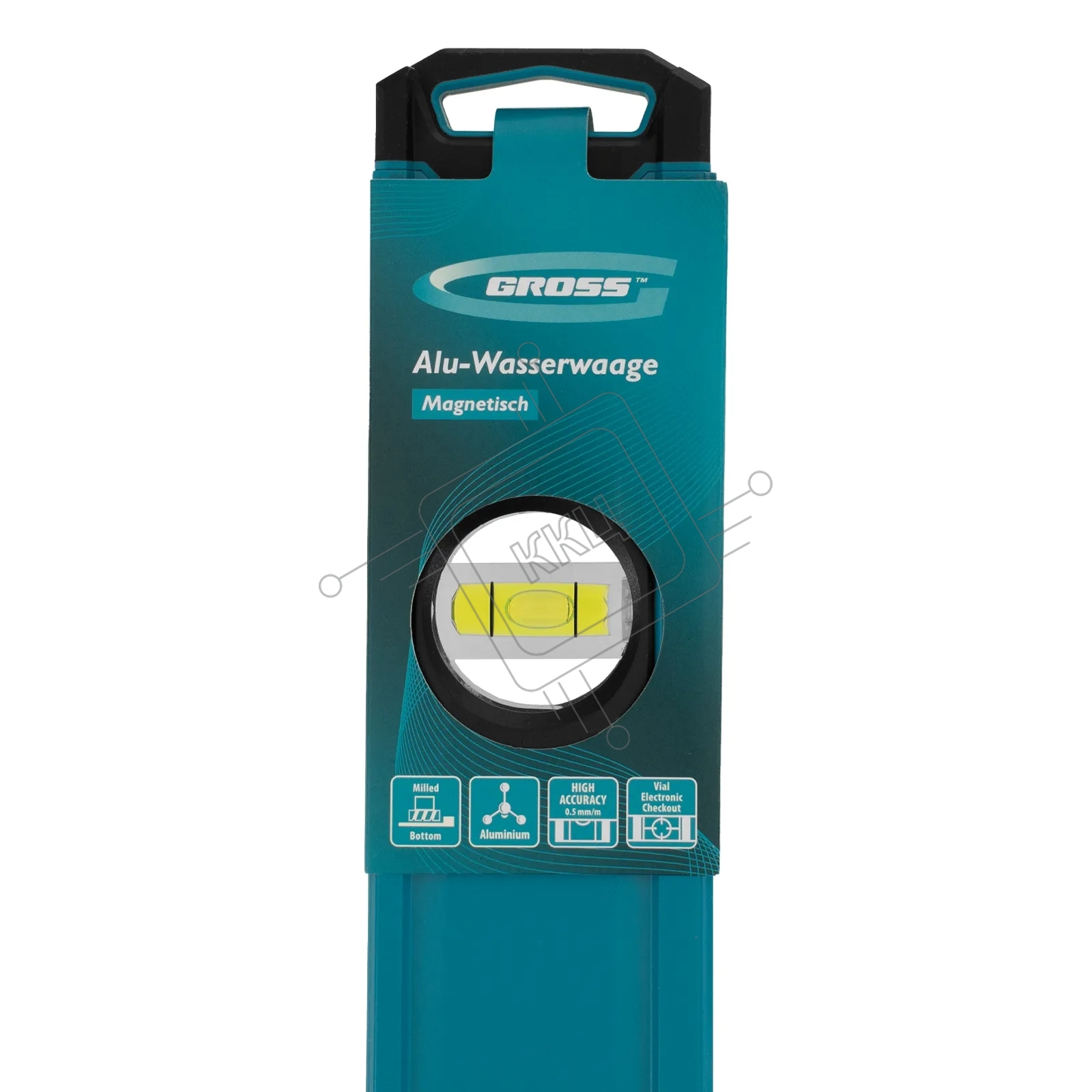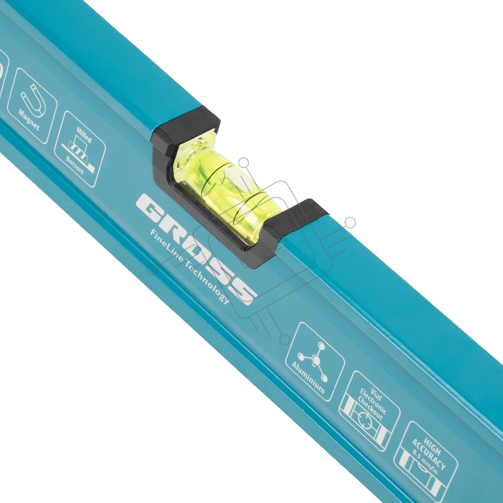 Уровень Gross 33655 алюминиевый, магнит., фрезерованный, 3 глазка, 0,5 мм/м, 1500 мм