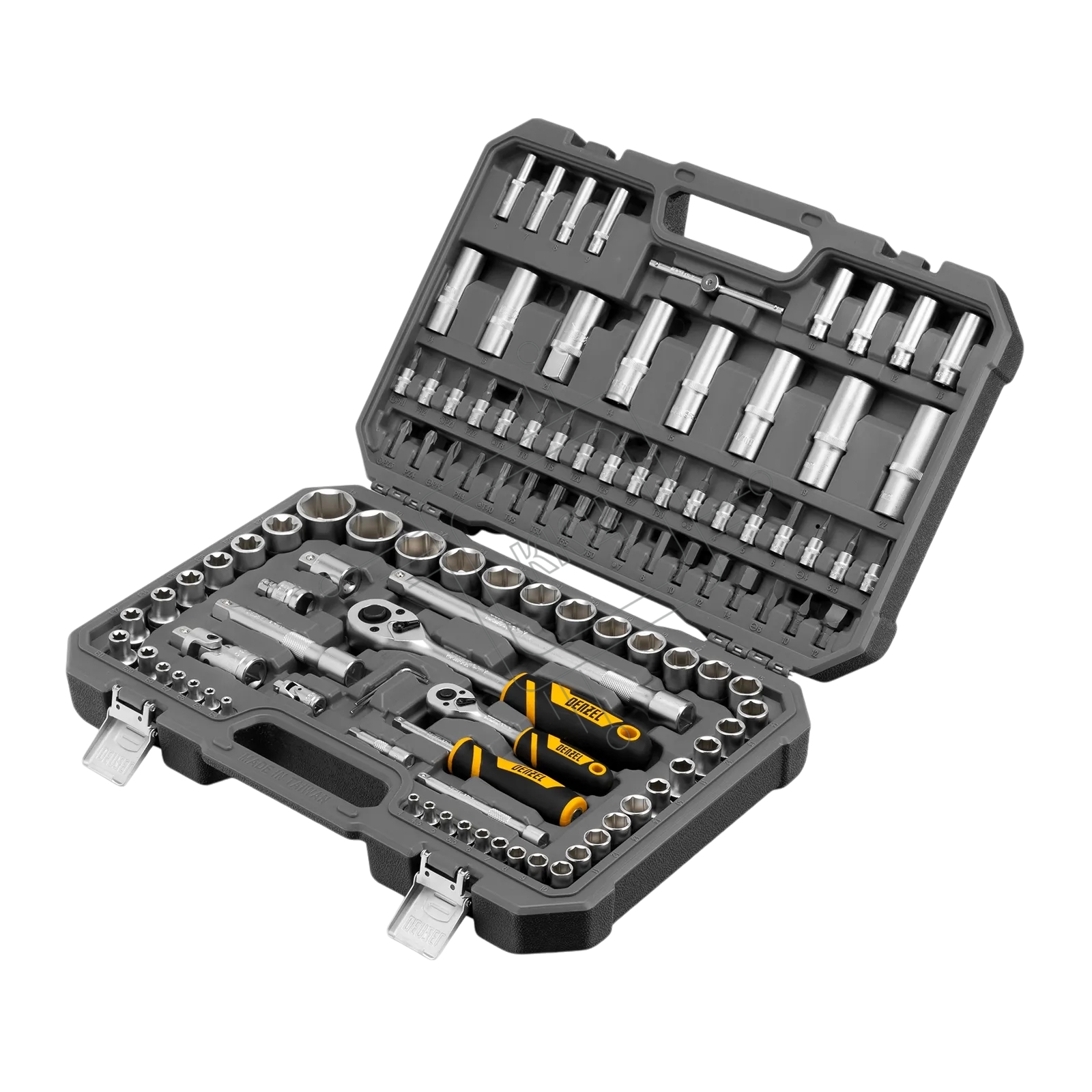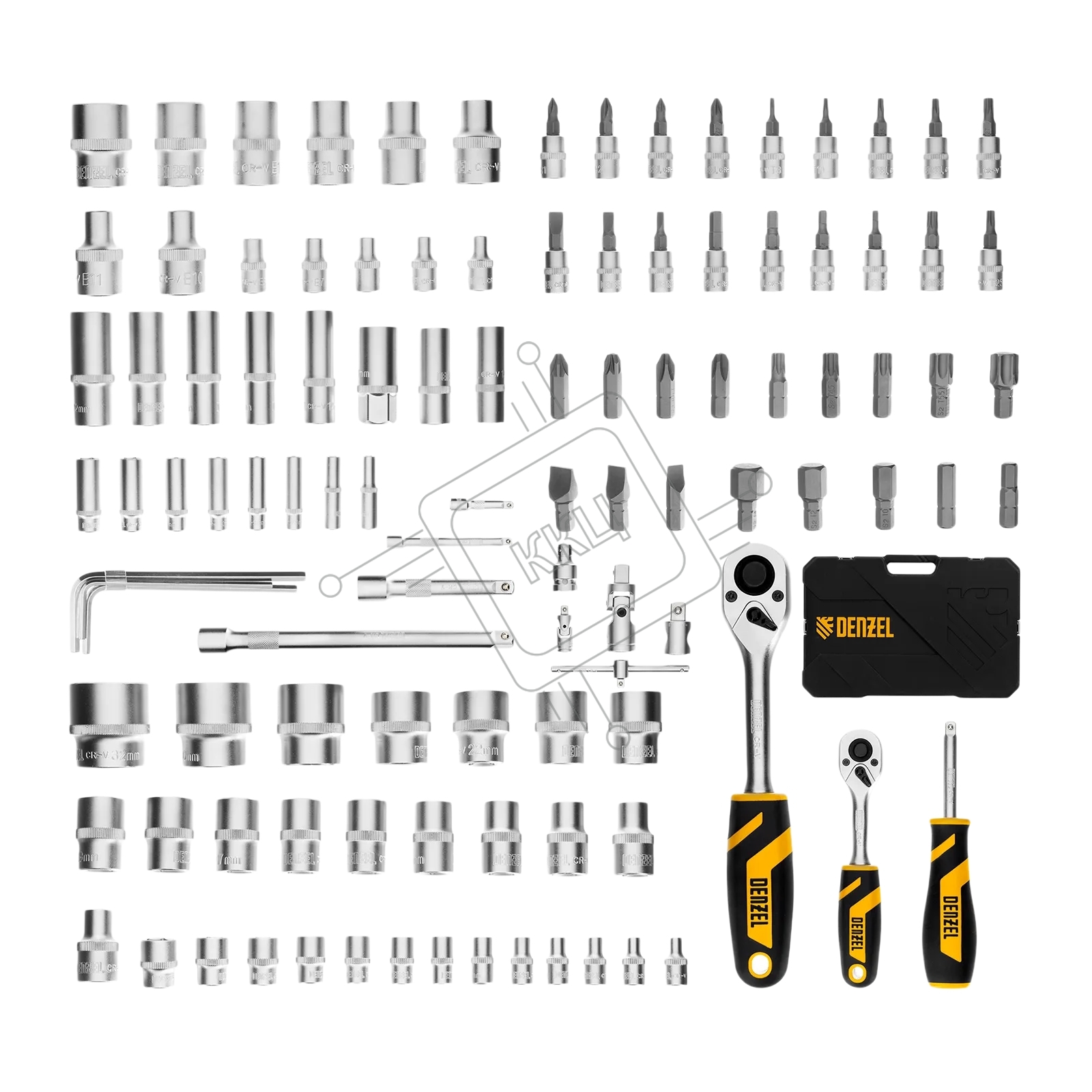 Набор инструментов Denzel 1/2", 1/4", CrV, S2, пластиковый кейс, 109 предметов