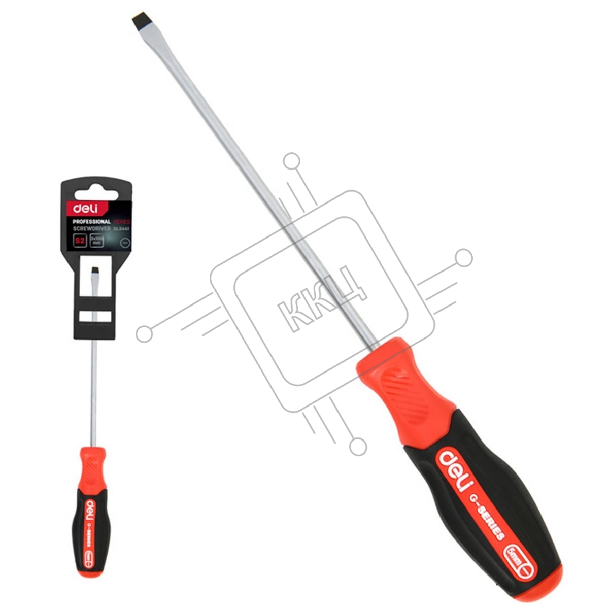 Шлицевая отвертка DELI DL3441 SL3x100мм сталь S2, матовый стержень, двухкомпонентная прорезиненная рукоять