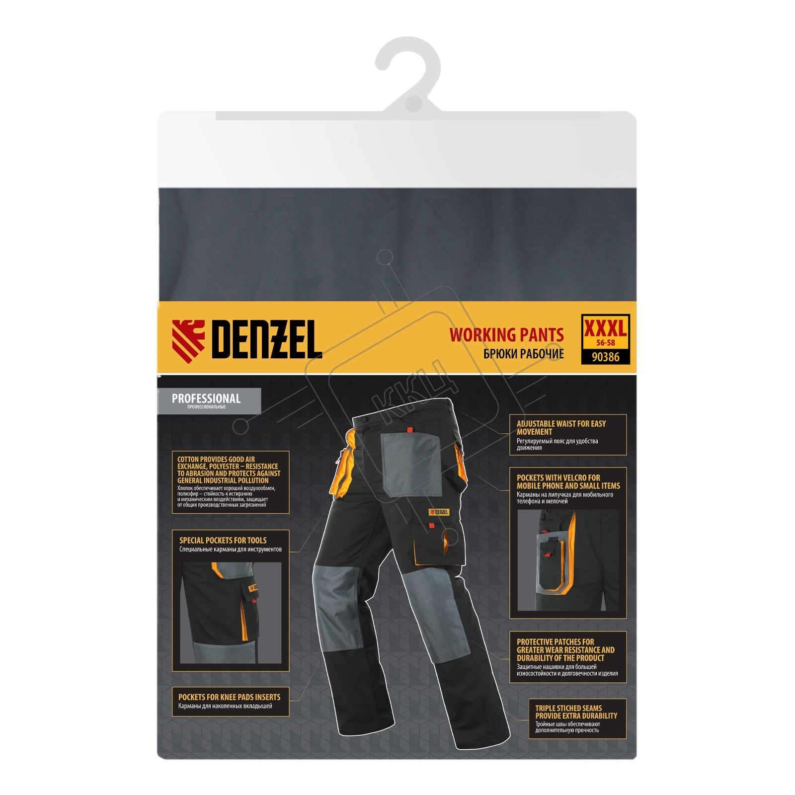 Брюки профессиональные рабочие Denzel 65% полиэстер 35% хлопок, XXXL