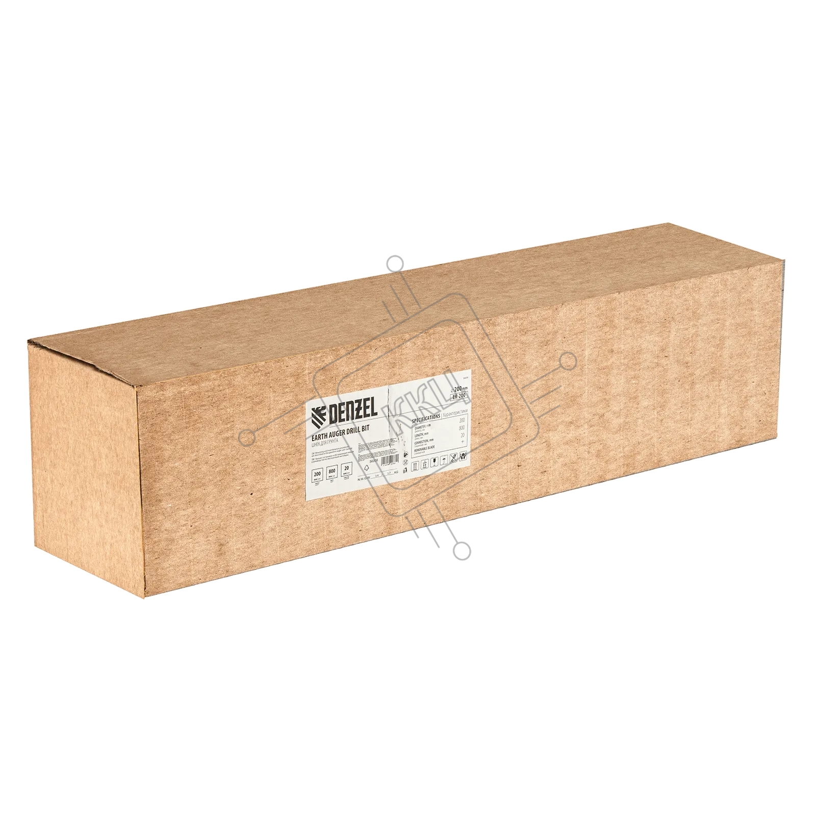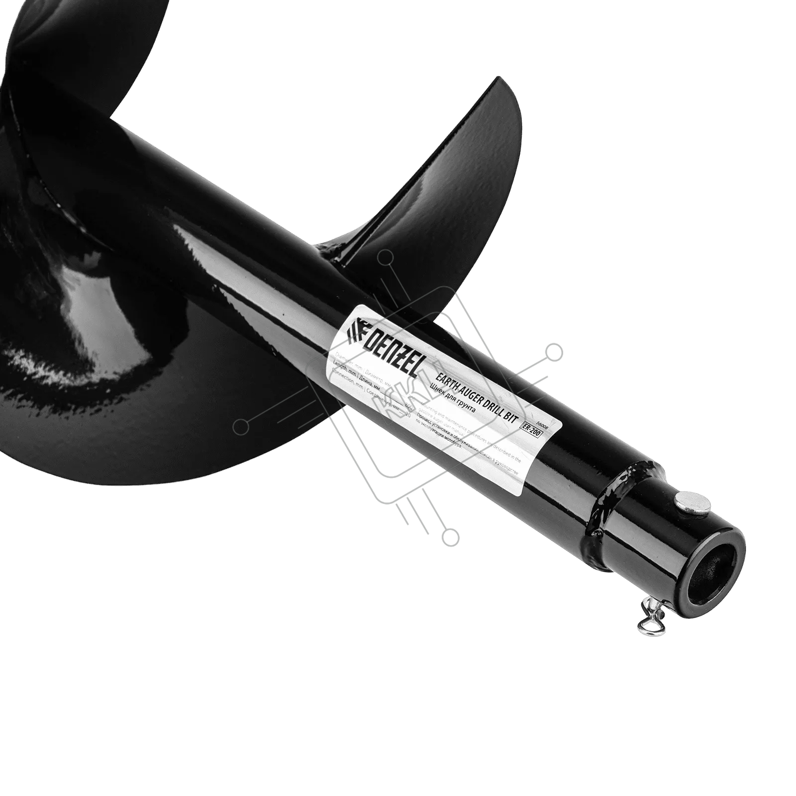 Шнек для грунта Denzel ER-200, диаметр 200 мм, длина 800 мм, соединение 20 мм, съемный нож