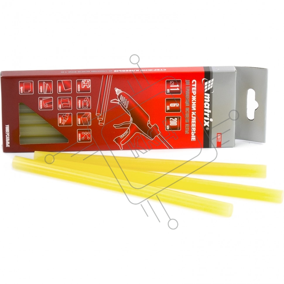 Стержни клеевые, 11 x 200 мм, желтые, 6 шт. Matrix