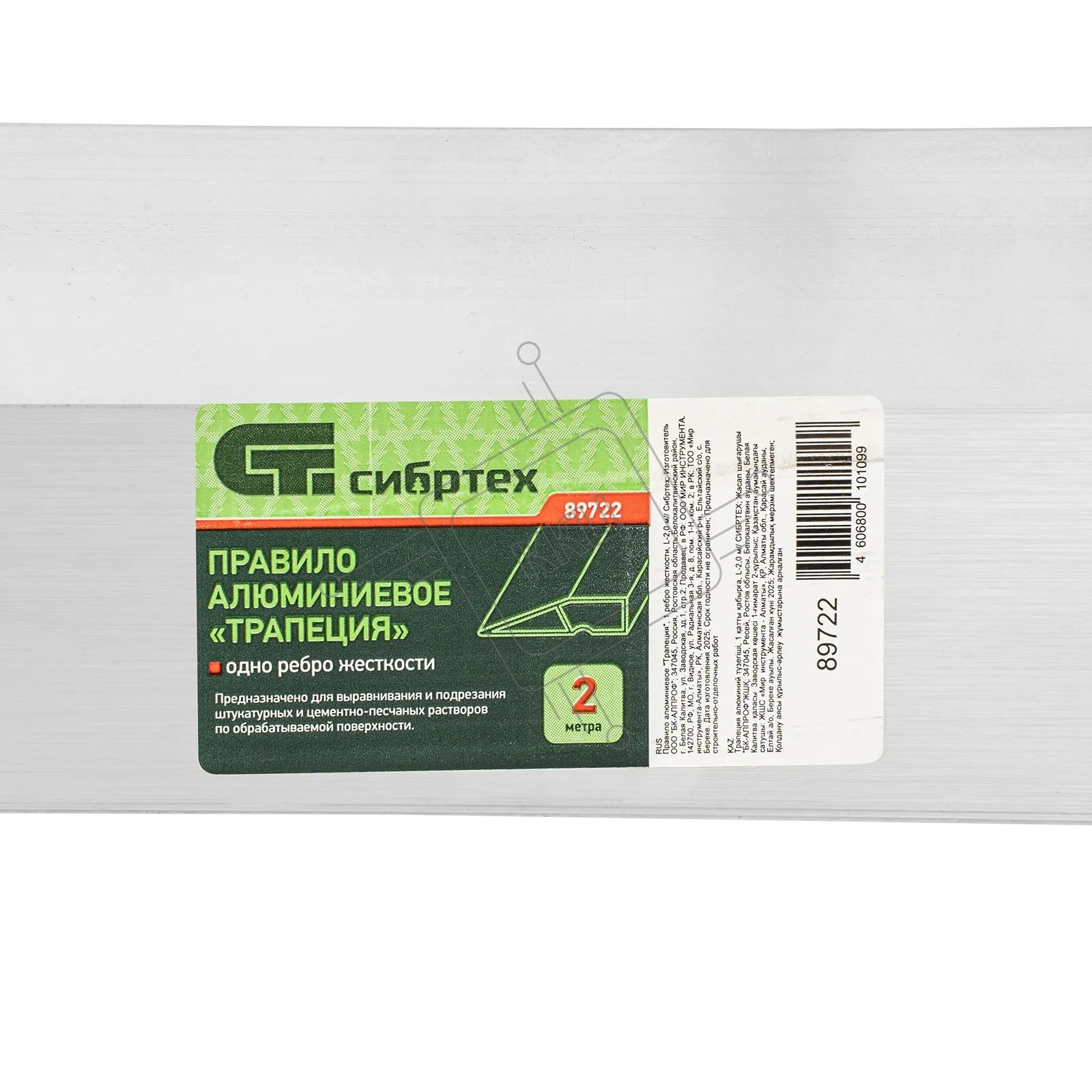 Правило алюминиевое Сибртех "Трапеция", 1 ребро жесткости, L-2,0 м
