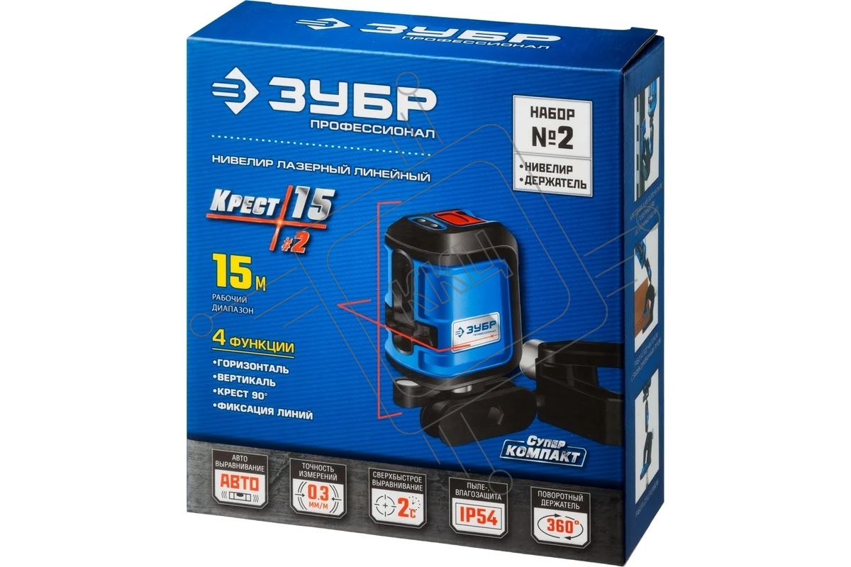 Нивелир лазерный ЗУБР КРЕСТ-15 (34902-2_z01) суперкомпакт, 15м, точн. +/-0,3 мм/м, держатель