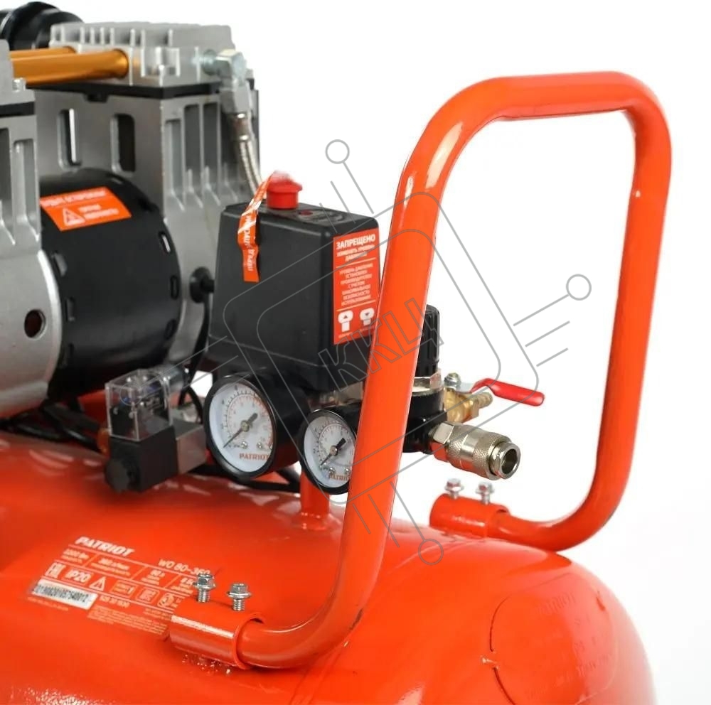 Компрессор PATRIOT WO 24-160 525306375 Безмасляный; Мощн. 1,1 кВт; Напр. 230В Об. двиг.: 2850 об/мин; Производительность: 160 л/мин; Объем ресивера: 24 л; Давление: 8 бар