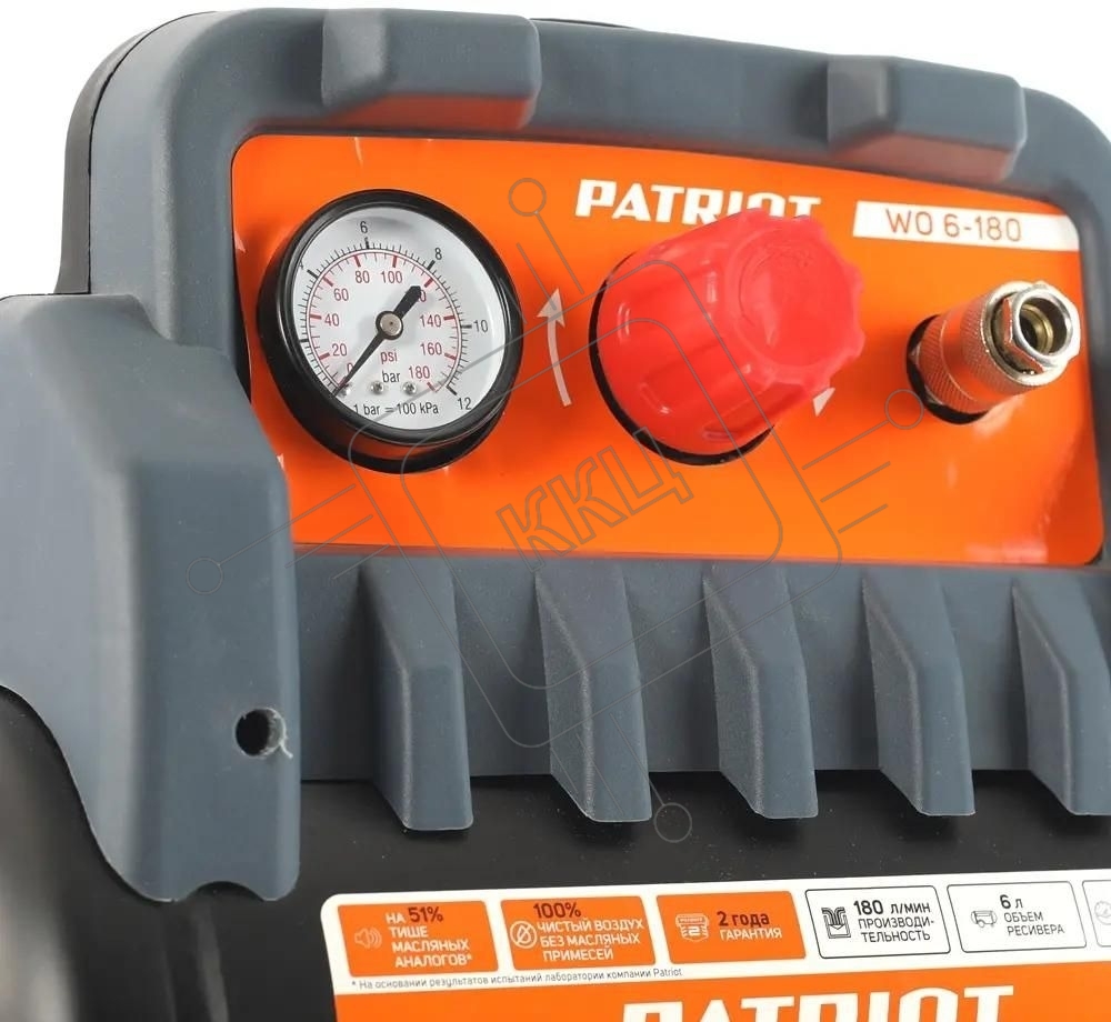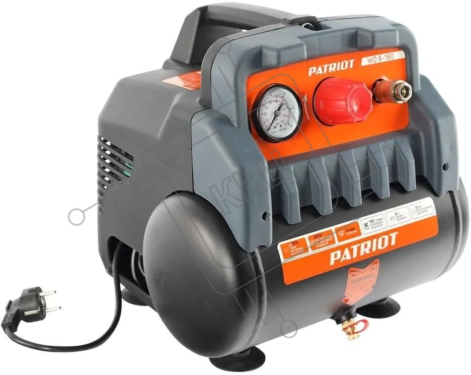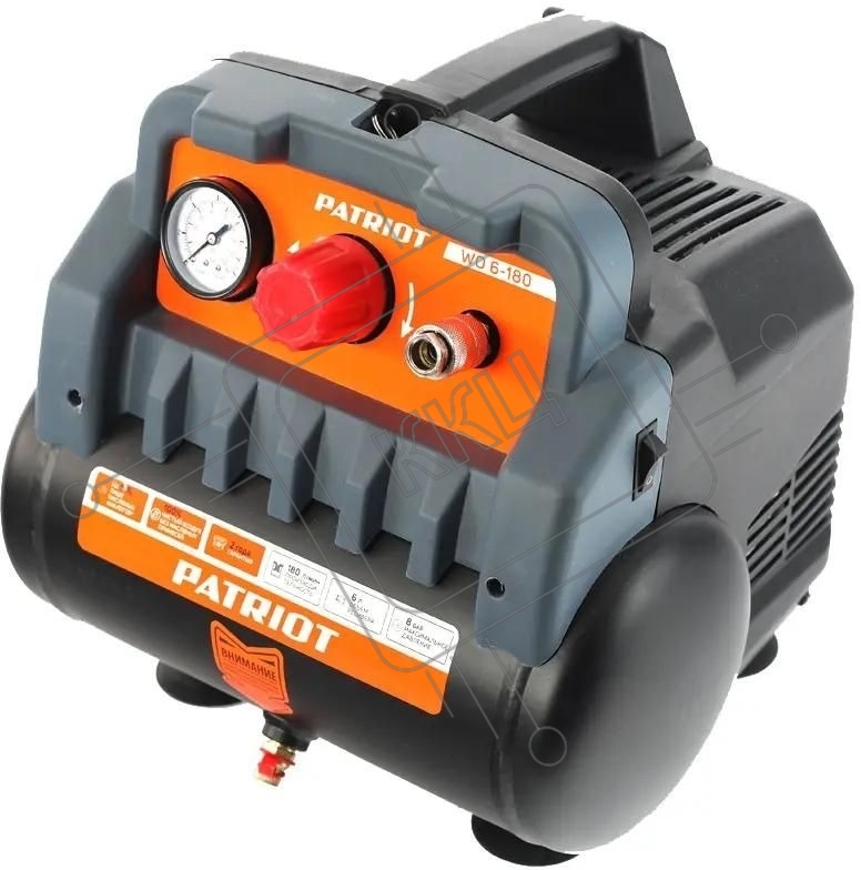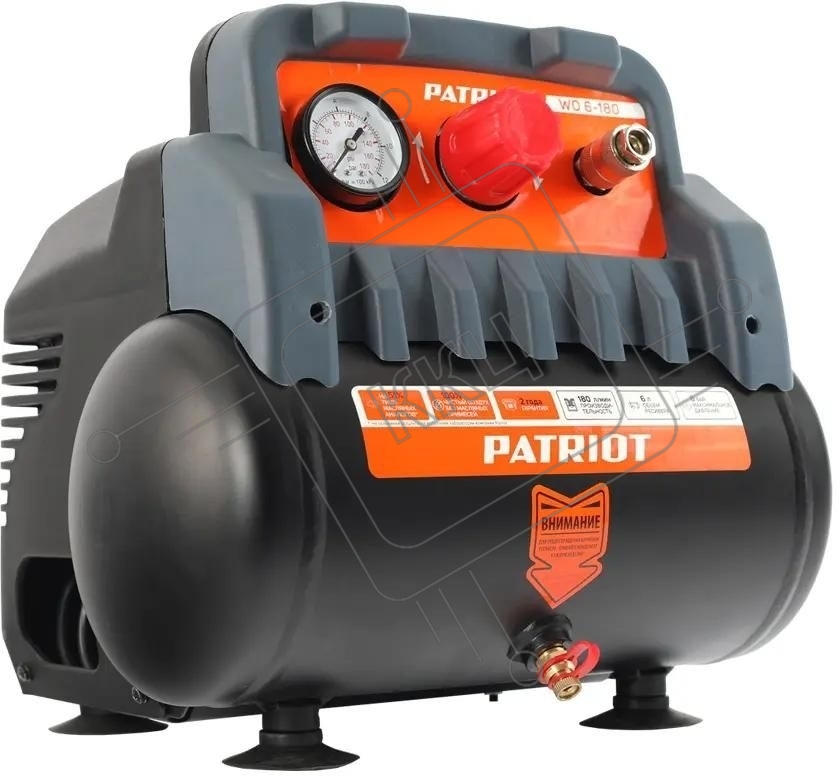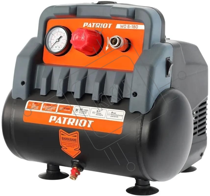 Компрессор поршневой Patriot WO 6-180 безмасляный 180л/мин 6л 1100Вт черный/оранжевый