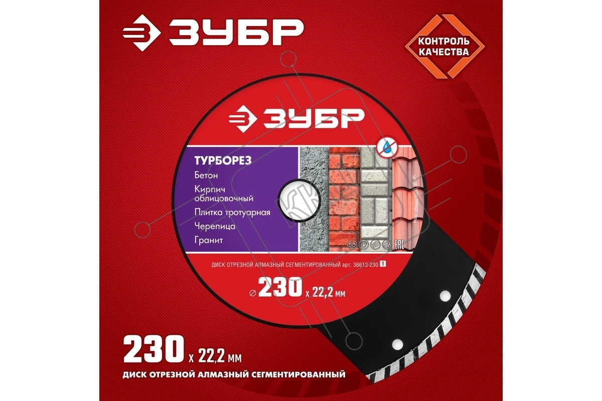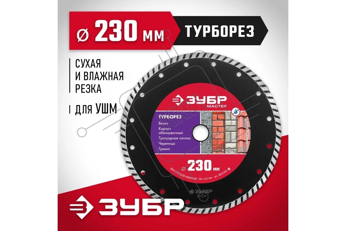 Диск алмазный отрезной сегментированный по бетону, кирпичу, камню, ТУРБОРЕЗ 230 мм, ЗУБР