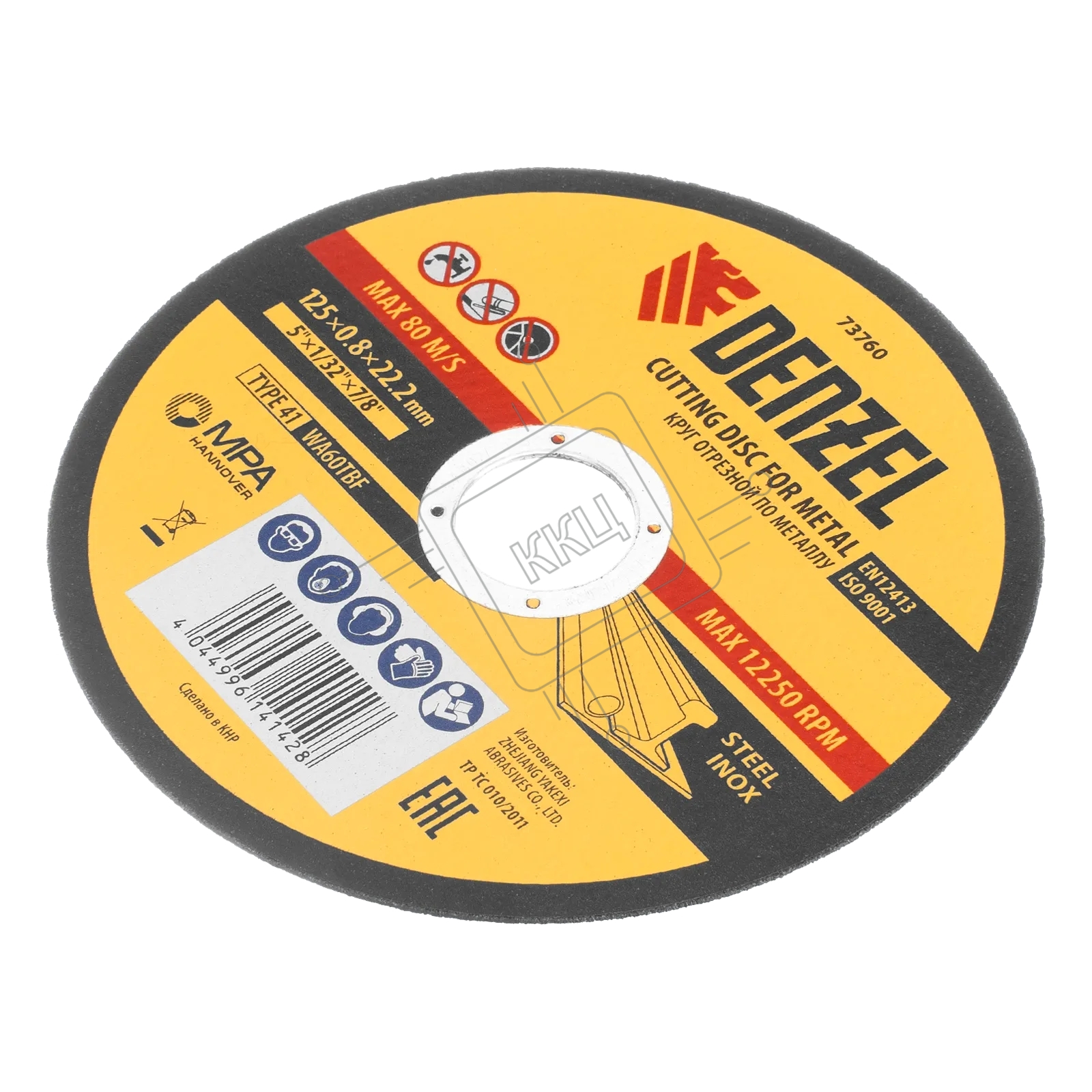 Круг отрезной по металлу, 125 х 0,8 х 22,2 мм, WA60TBF Denzel