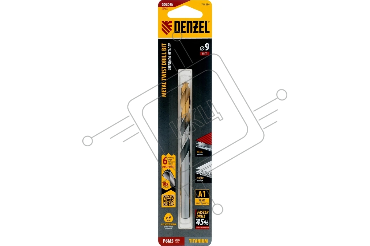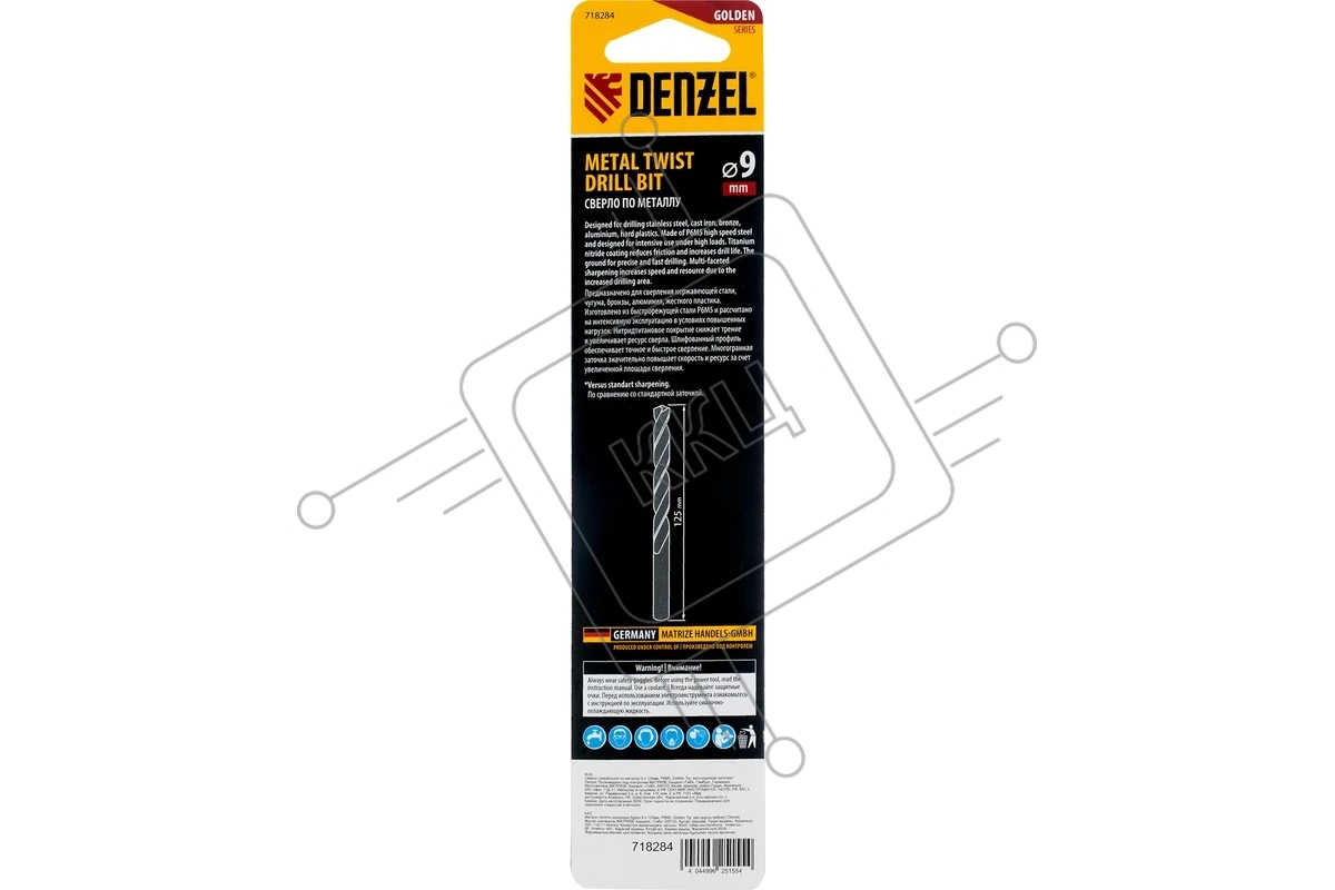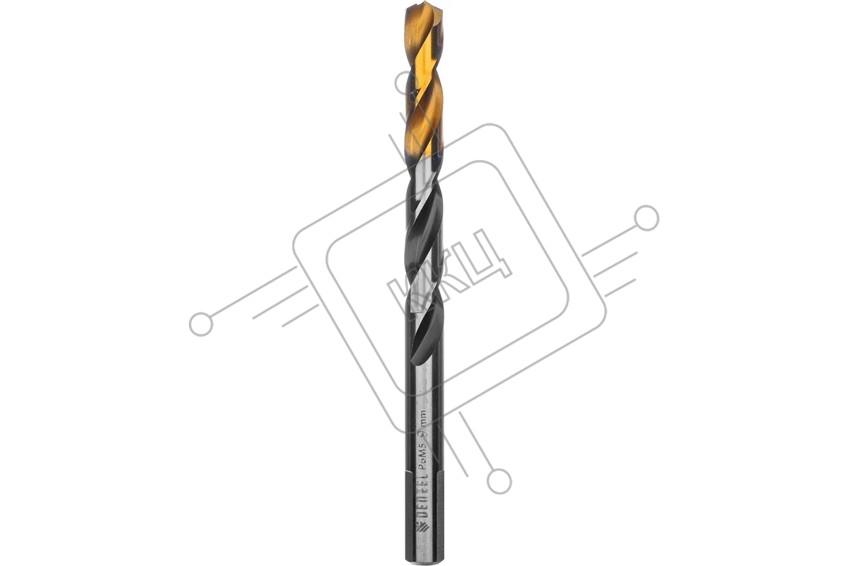 Сверло спиральное по металлу Denzel 9 x 125мм, Р6М5, Golden Tip, многогранная заточка