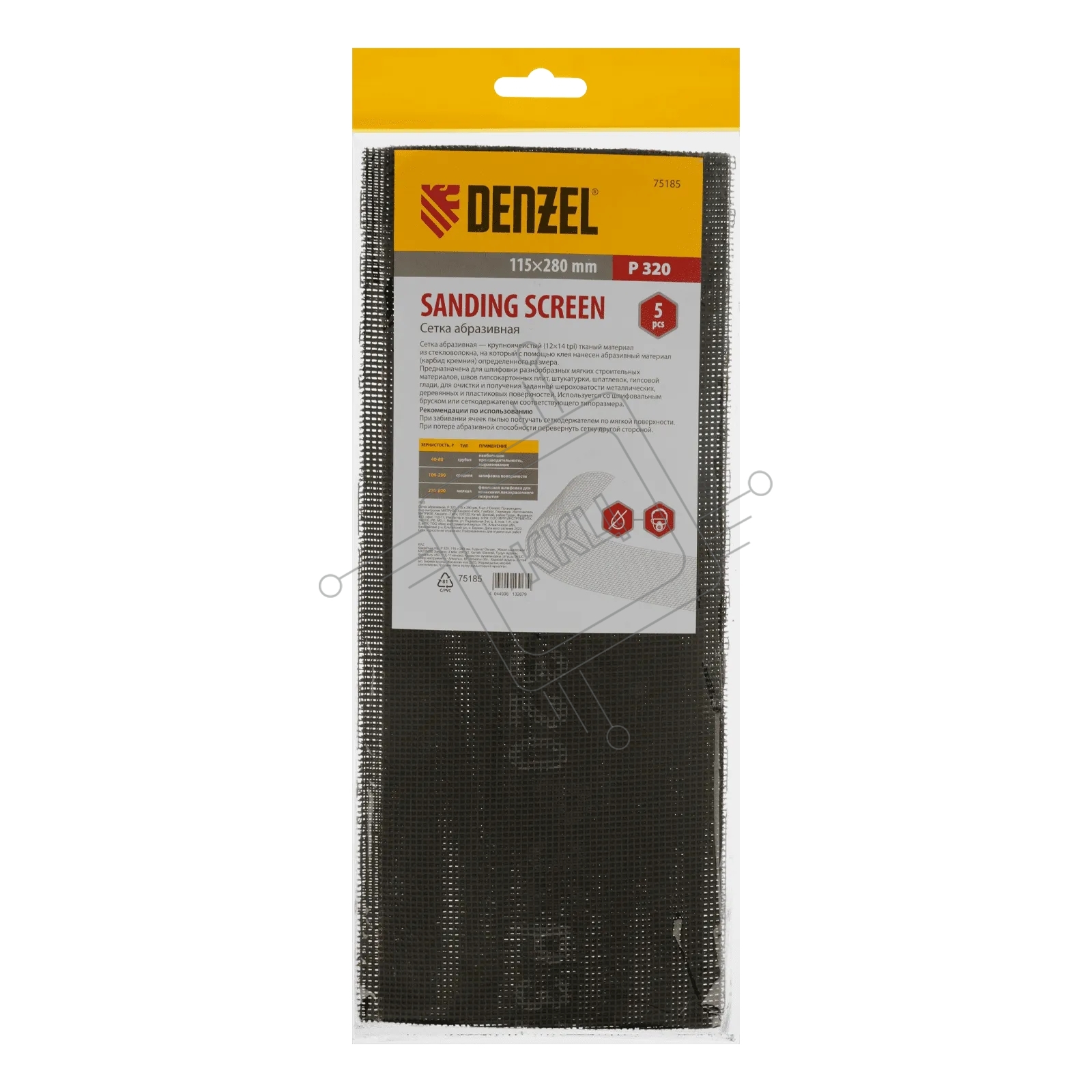 Сетка абразивная Denzel P 320, 115 х 280 мм, 5 шт.