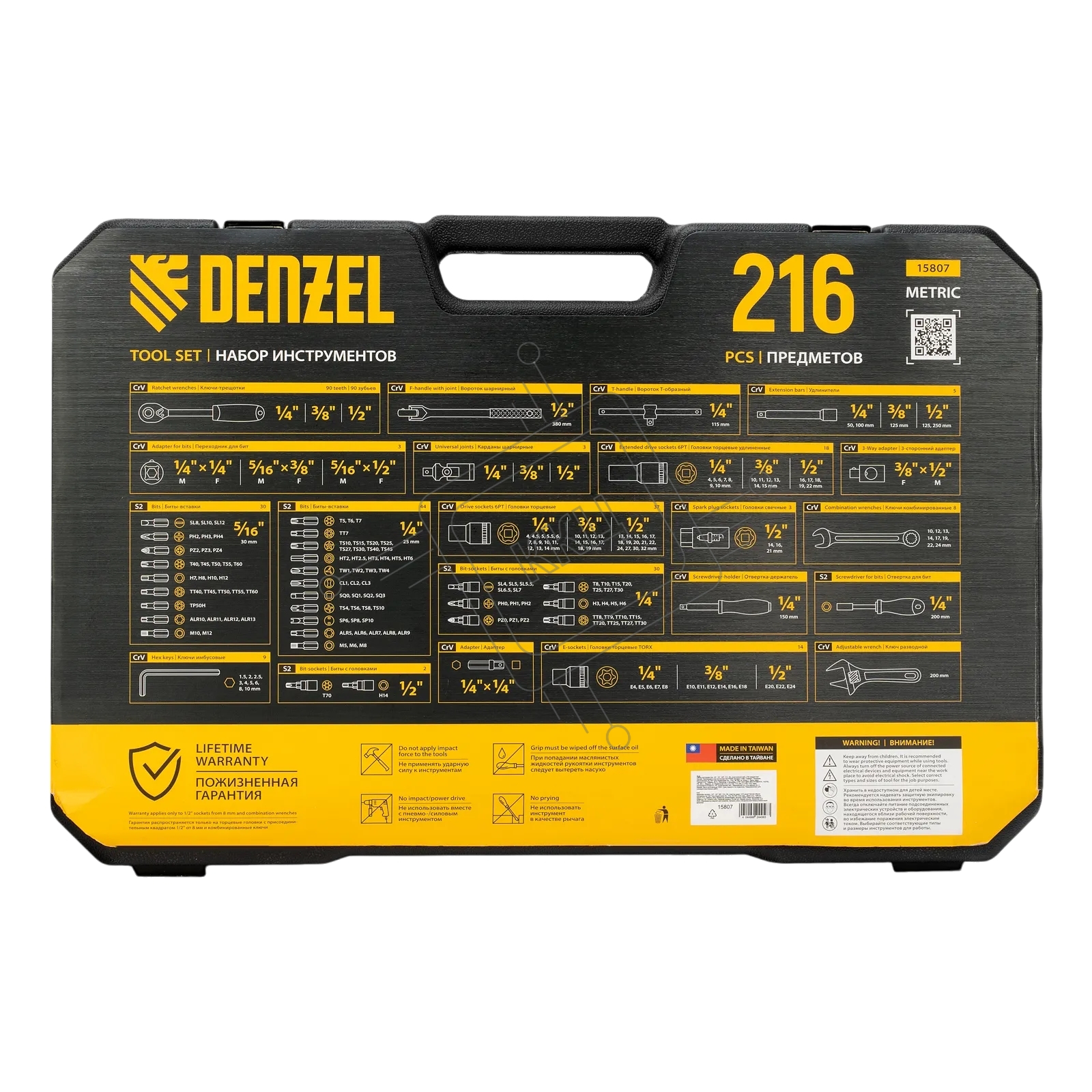 Набор инструментов Denzel 1/2", 1/4", 3/8", CrV, S2, пластиковый кейс, 216 предметов