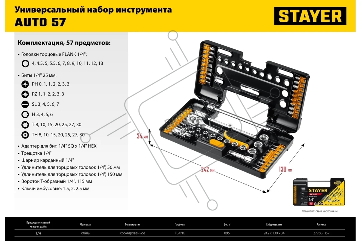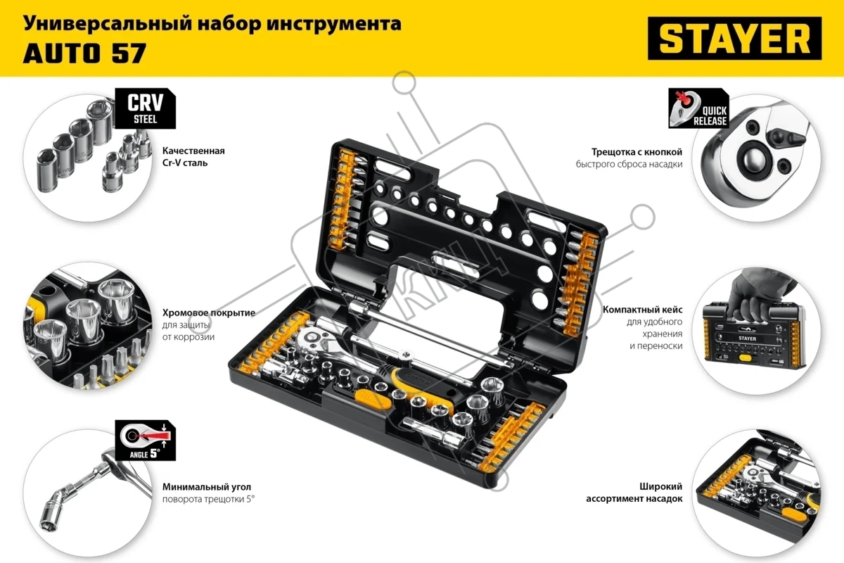 Набор STAYER AUTO 57 универсальный набор инструмента 57 предм.
