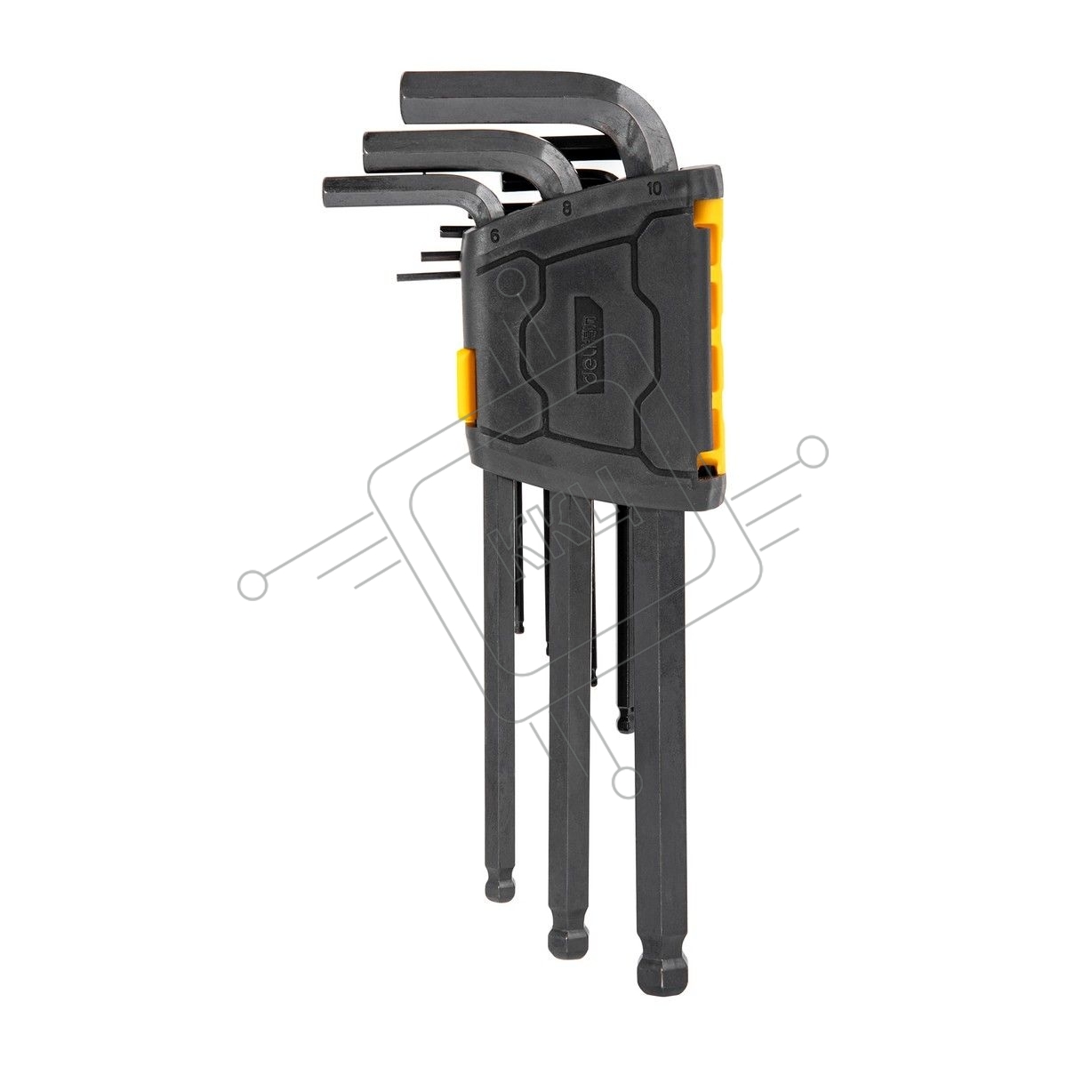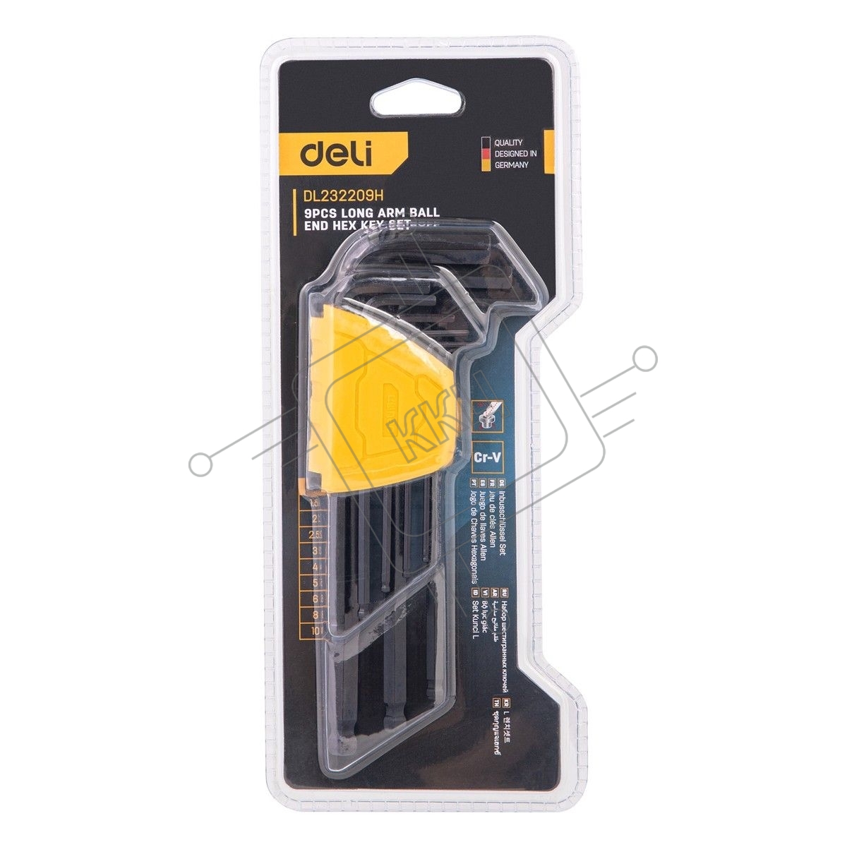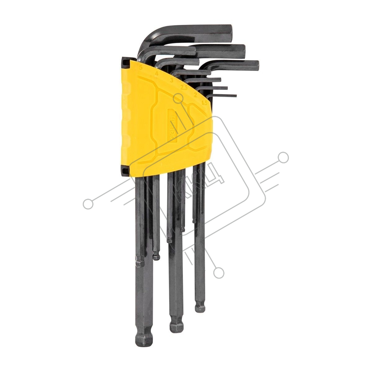 Набор шестигранных ключей с шаром удлиненных Deli DL232209H 9 шт Материал CR-V. Спецификация: 1,5,2,2,5,3,4,5,6,8,10мм, пластиковый держатель