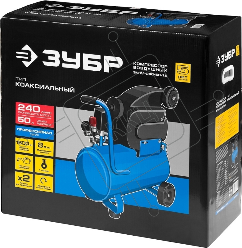 Компрессор Зубр ЗКПМ-240-50-1.5 воздушный поршневой масл. прямой привод 240л/мин 50л 8атм 1500Вт